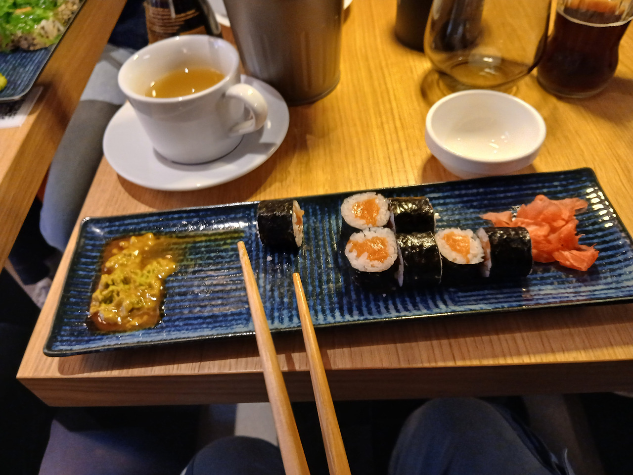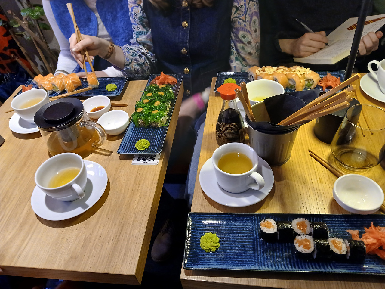 '신주쿠(新宿) 역' 컨셉의 브랜드를 들고 캐주얼한 일본풍 장식으로 도배된 식당은, 누가 봐도 여기가 일식을 다루는 공간이라는 것을 알 수 있었다. 보통 특정 국가의 음식점을 가면 그 국가 교민이나 유학생들의 비중이 많은 편인데, 일본인은 아예 찾을 수 없었다. 애초에 위치부터가 현지인들이 사는 거리 중앙에 있어서 그런지 자리는 폴란드인이 대부분을 차지하고 있었다.