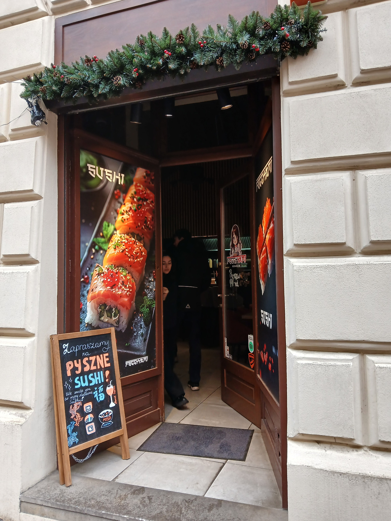 위의 일식당은 초밥집. 여기는 3월 23일 크라쿠프 3일 차 여행을 갔을 때 점심으로 방문한 식당이다. 식당의 이름은 'FoggyYami Sushi'. 앞에 안개가 낀 것처럼 보이지 않을 정도로 맛있는 스시를 만든다는 얘기인가.