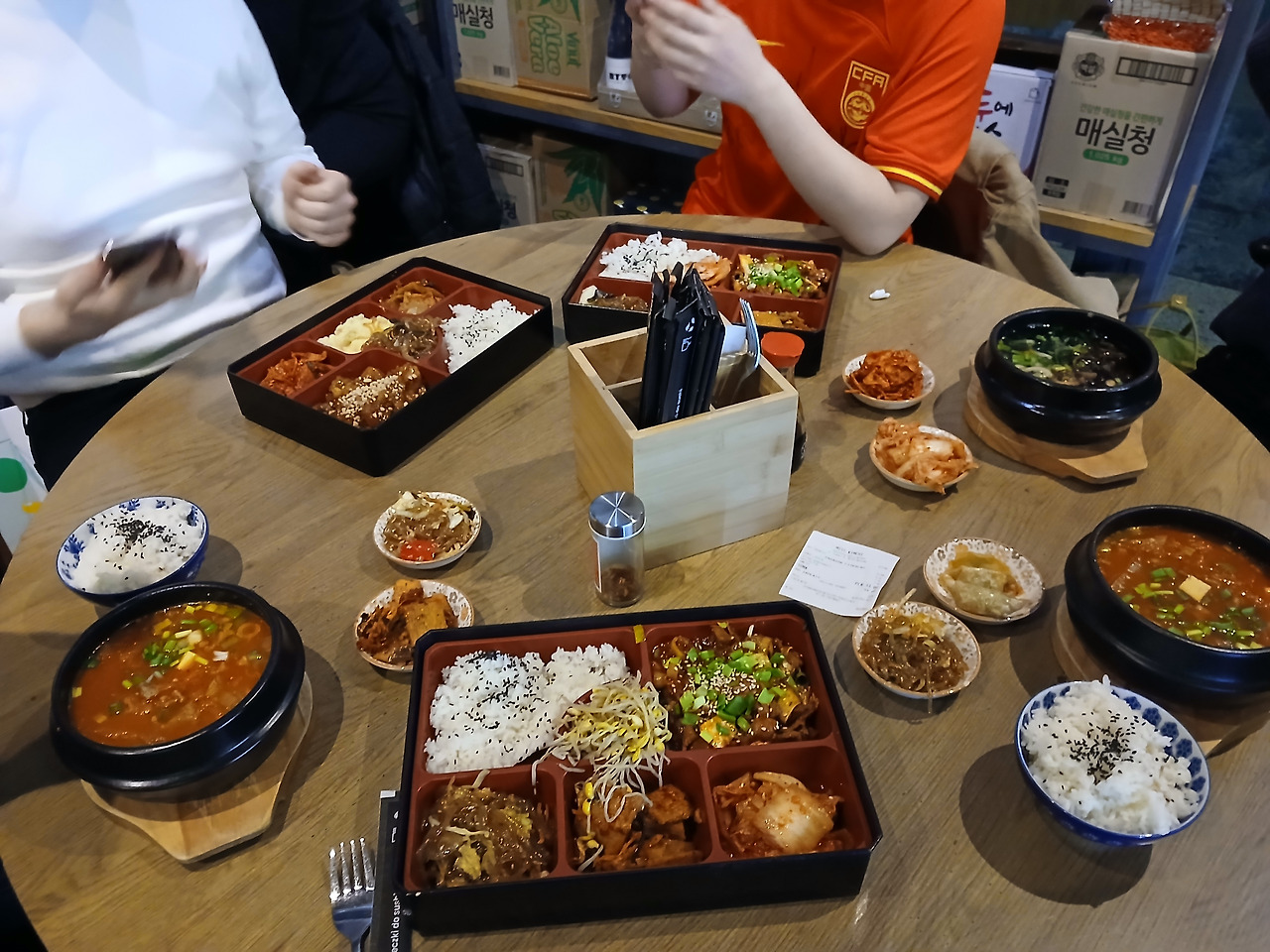 잘 먹기는 했지만, 한국 동기들 사이에서는 우리 입맛에 비추어봤을 때 소문난 맛집이라고 할 수준은 아닌 걸로 결론 내렸다. 보면 알겠지만, 약간 맛있는 학교 급식실 정도? 반찬을 보면 애초에 컨셉이 그런 느낌인 것 같기는 하다. 그래도 한국 음식점이 그리우신 분들이라면 충분히 즐길 만한 음식점이기는 했다.