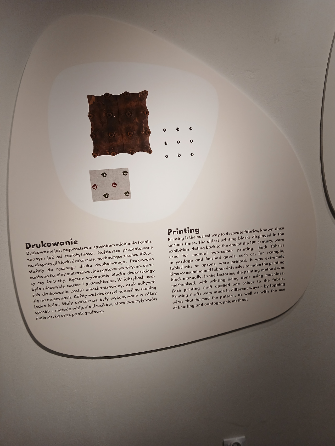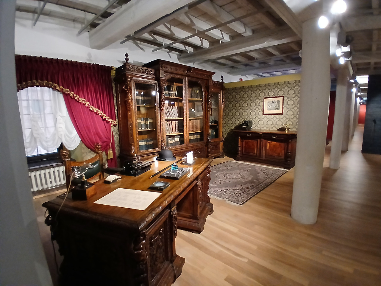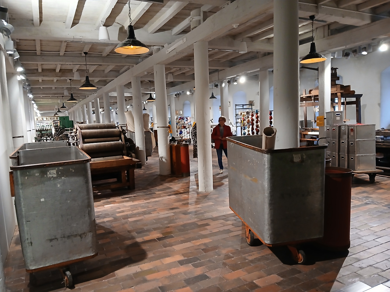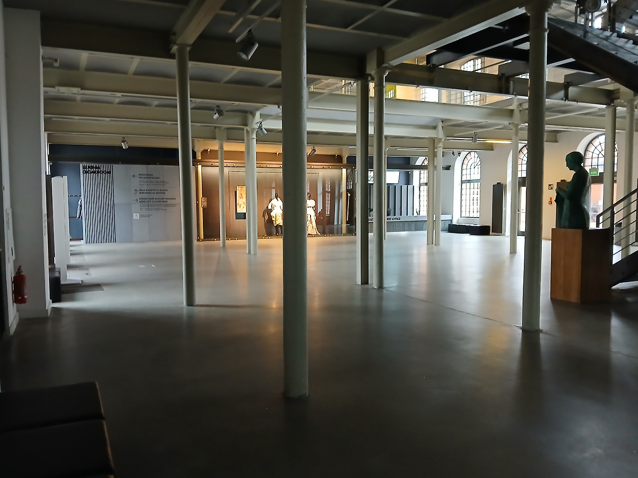 그렇게 잠깐이나마 체험실을 구경하고 다시 메인 홀로 돌아온 투리. 이제는 제대로 건물 안의 전시관을 둘러볼 차례이다. 이 메인 건물에 대해 잠깐 설명을 하면, 해당 건물은 Ludwik Geyer 가문이 고전주의 양식으로 만들었던 건물이다. 폴란드에서 가장 아름답고 독특한 산업 건축 기념물 중 하나로 손꼽히는 이 건물은, 1955년부터 본격적으로 박물관으로 개조되었다. 현재 이 건물은 대부분 상설 전시관이 아닌 특별전시회를 위주로 운영하고 있으며, 전시관 안에는 여러 원단과 그 원단들을 활용한 옷감 및 작품들을 전시하고 있다. 우치의 방직 산업을 통한 패션의 발전과 현재 역시 이 실내전시관에 나와 있다.