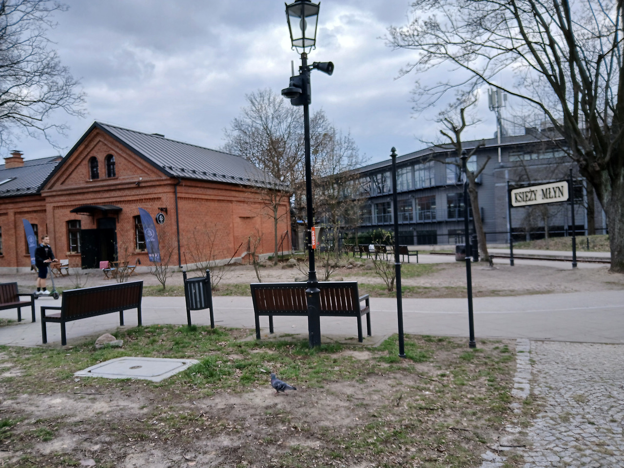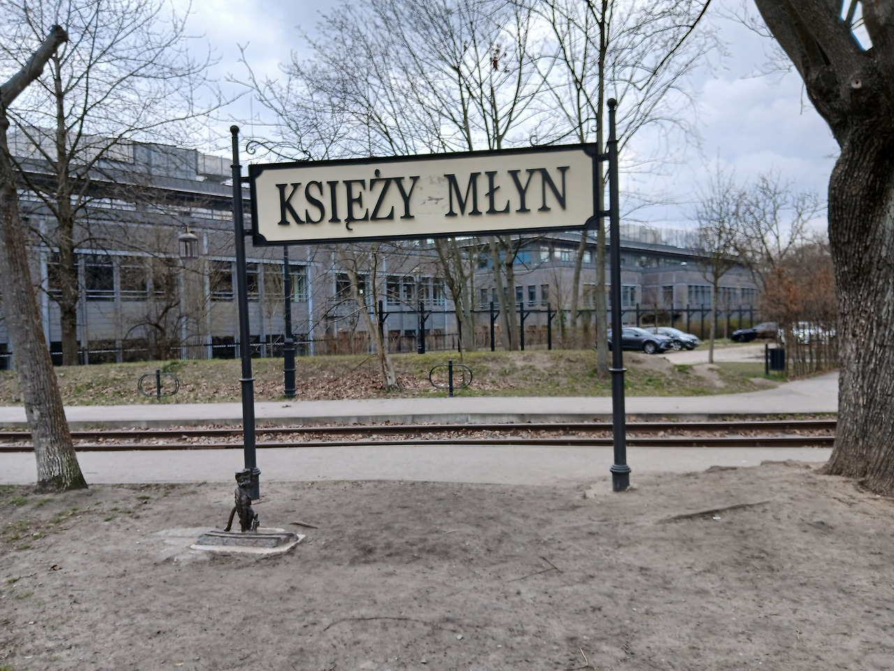 기대하는 마음으로 근처 간판을 확인해보니, 역시나! 투리가 기대했던 폴란드어가 큰 글씨로 당당하게 적혀 있었다. 'Księży Młyn', 한국어로는 '크셴지 믈린'이라고 발음하며, 영어로는 'Priest's Mill'이라고 부른다. 이번 글의 부제목을 원어로 표기한 이유는 한국어로 쓰기에는 어딘가 어색한 것도 있지만, 해당 장소에 대응되는 한국어 명칭을 찾을 수 없었기 때문이다.