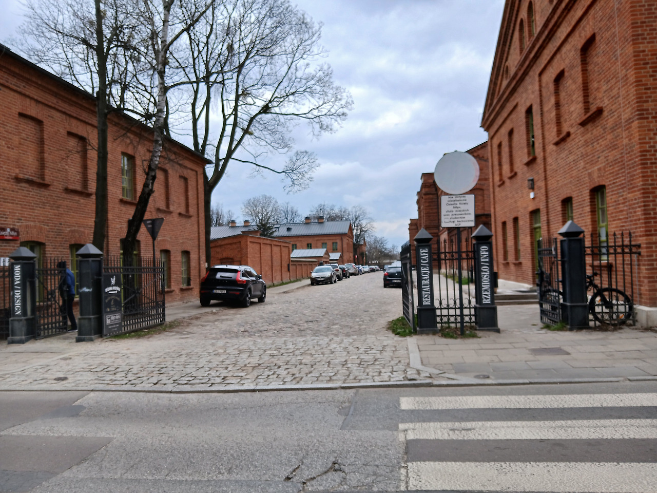 한편 박물관의 반대쪽에는 카롤 쉐이블러가 지은 커다란 방적 공장 건물이 놓여 있었다. 아까까지만 하더라도 하나같이 사람의 발길이 닿지 않는 황량한 느낌이었는데, 드디어! 드디어 사람이 좀 통하는 도로변으로 왔다. 이쪽은 안쪽보다는 펍이나 사무소 등 불이 켜져 있는 공간들이 많았고, 이따금씩 차와 사람들도 돌아다녔다.