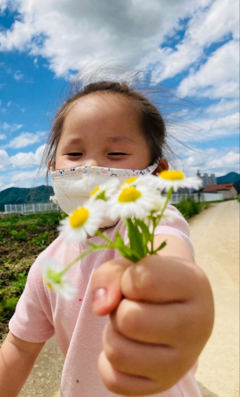 네 살 천사와 풀꽃 송이 여섯의 미소를