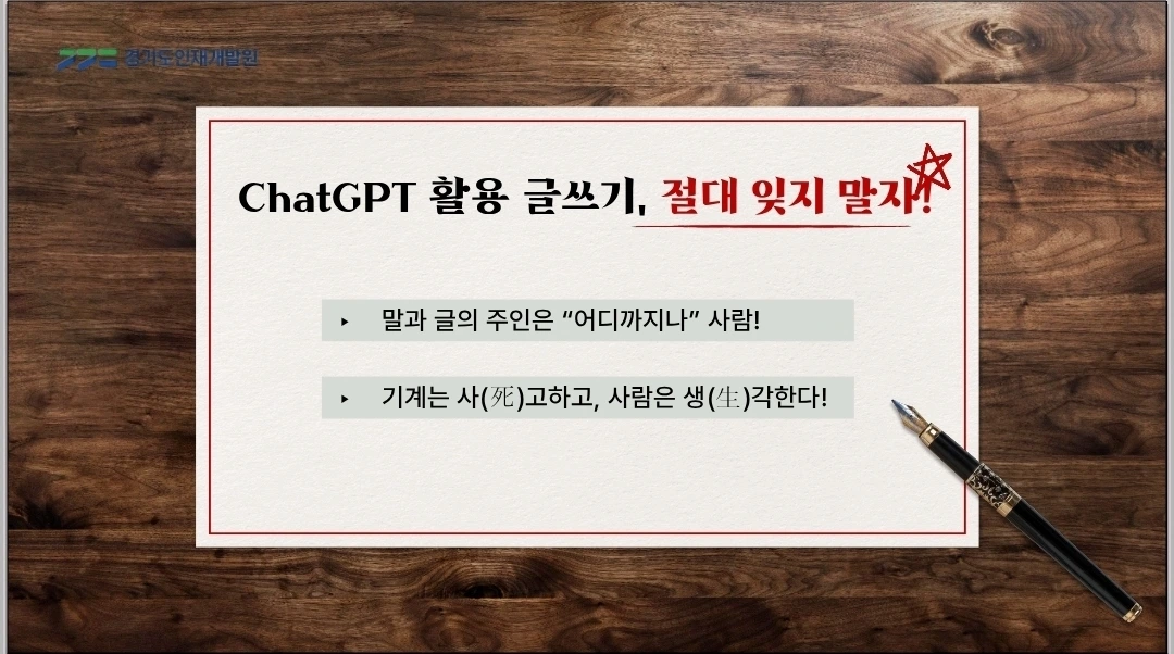 "글의 주인은 사람이어야 한다. 개발로건 새발로건 스스로 쓴 초고를 챗지피티에 넣고 보완을 요구해야 한다. 생각과 첫 집필은 온전히 사람의 몫이다."