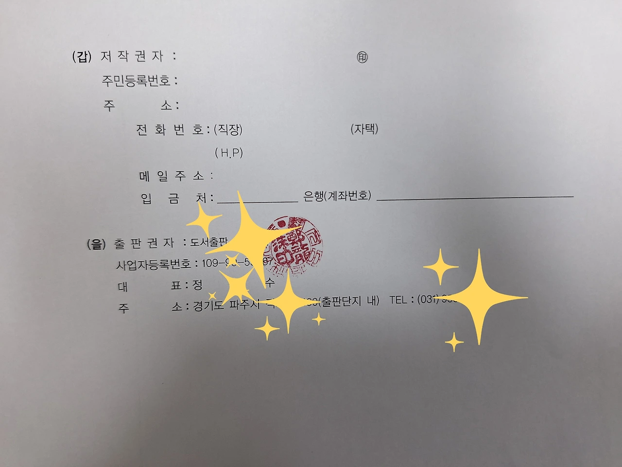 오늘 출판사로부터 '출판 계약서' 원본을 받았습니다.