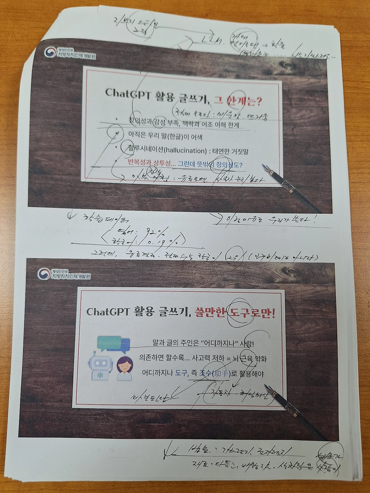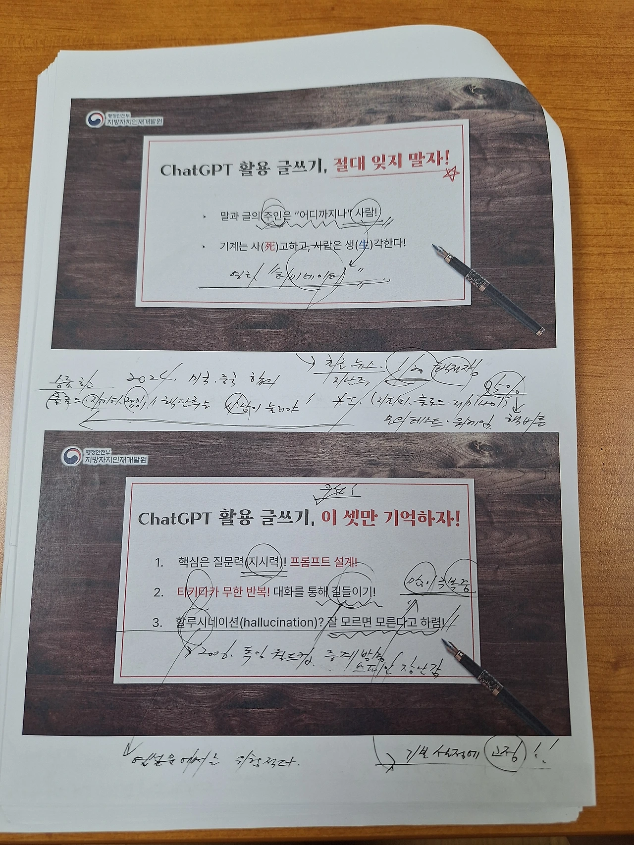 전날 리허설은 반드시, PPT 장표 출력물에 직접 펜을 들고 손으로 강의 포인트를 쓰면서 진행한다. 여기서는 이걸 강조, 저기서는 이 멘트를 꼭. 추가로 찾아보고 공부할 부분도 체크.