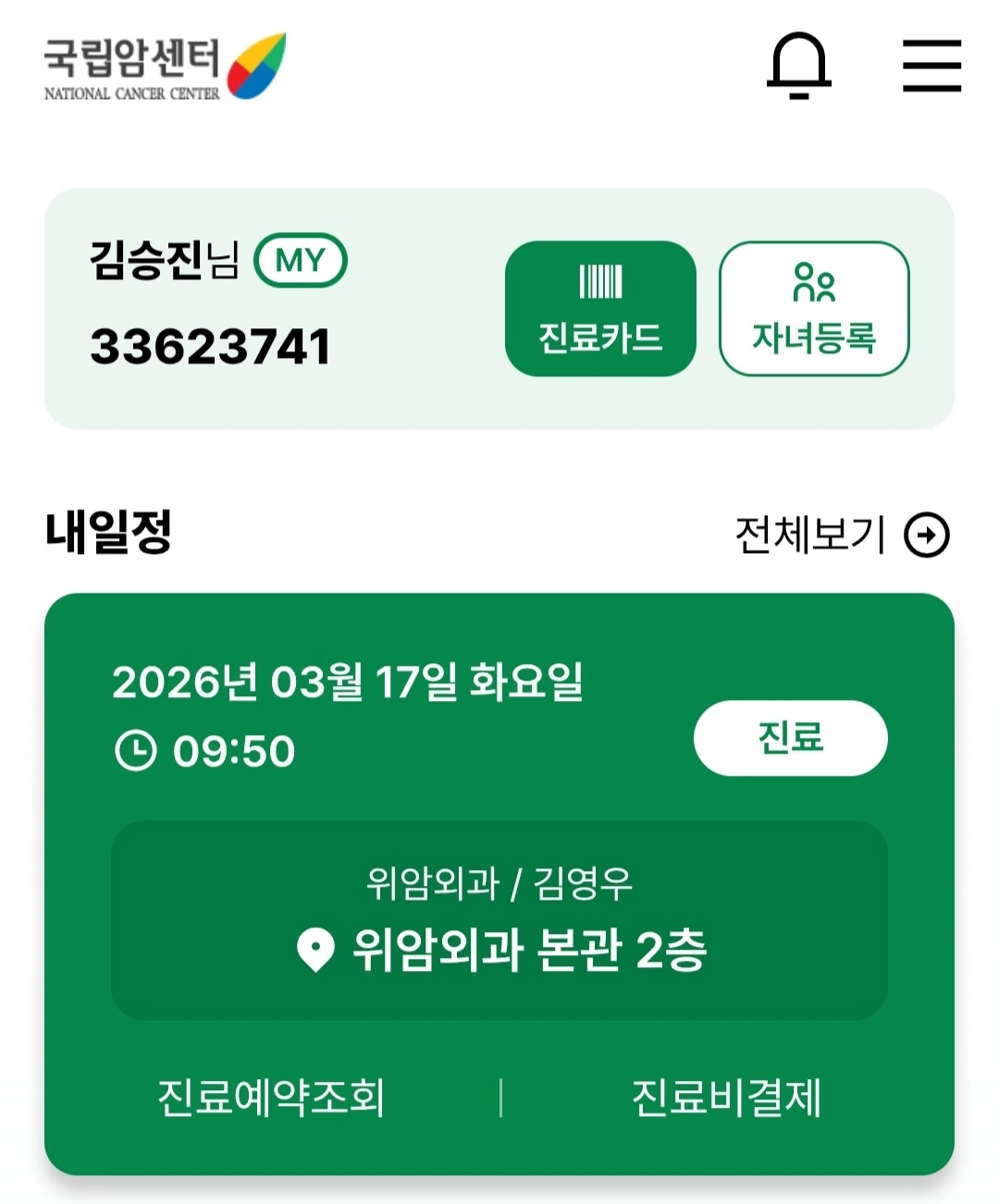 지난주 받았던 (수술 후) 첫 내시경 검사, 그 결과를 확인하러 다시 찾은 여기. 고양시 일산동구 일산로 323. 국립암센터.