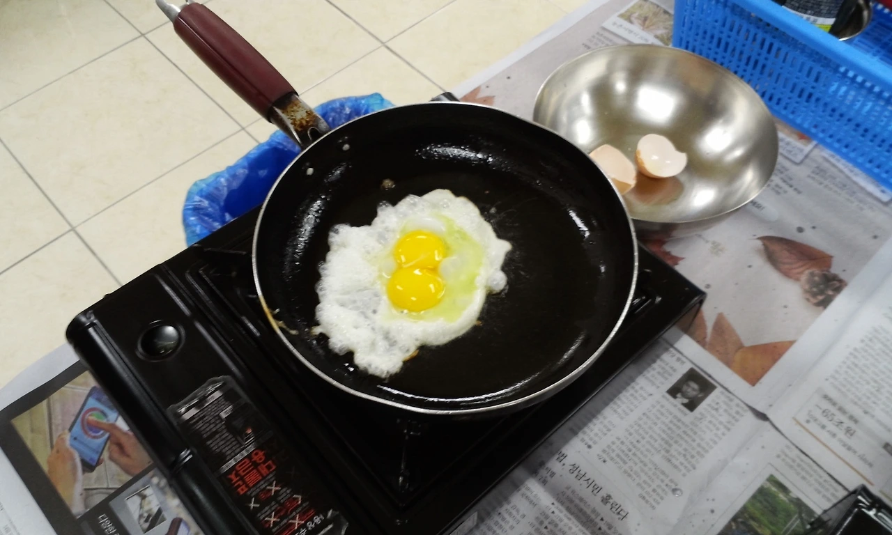 태어나 처음으로 쌍란 달걀 프라이를 만나다.