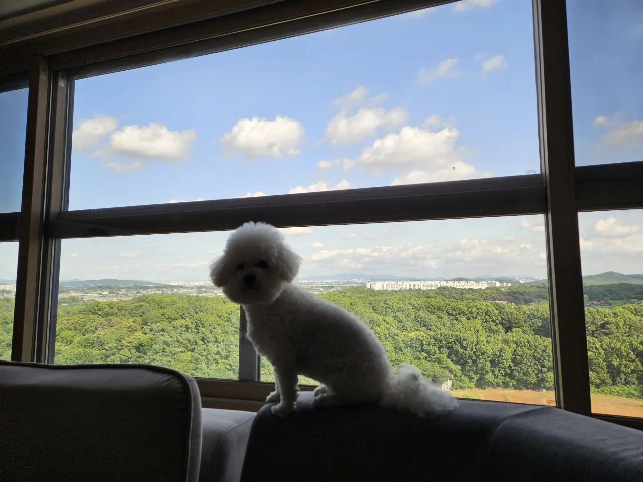 불안한 강아지는 어디 갔을까. 요즘은 우리 집의 주인노릇을 하고 있다. 우리가 외출할 때만을 기다렸다가 흘린 음식, 딸아이가 책상 위에 올려둔 간식 등을 열심히 찾아 먹는 재미에 푹 빠진 듯하다. 가끔 내가 햇살 좋은 오후에 창밖의 경치를 감상하고 있으면 모모는 한발 먼저 소파 위로 올라가 밖을 보고 있는데 그 모습이 너무 귀엽다.