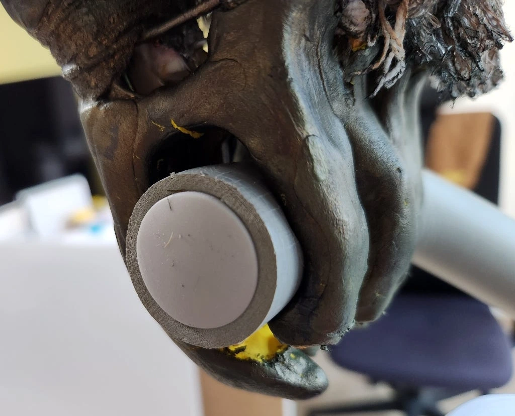 가죽을 바느질로 귀 뒤에 붙여준 모습