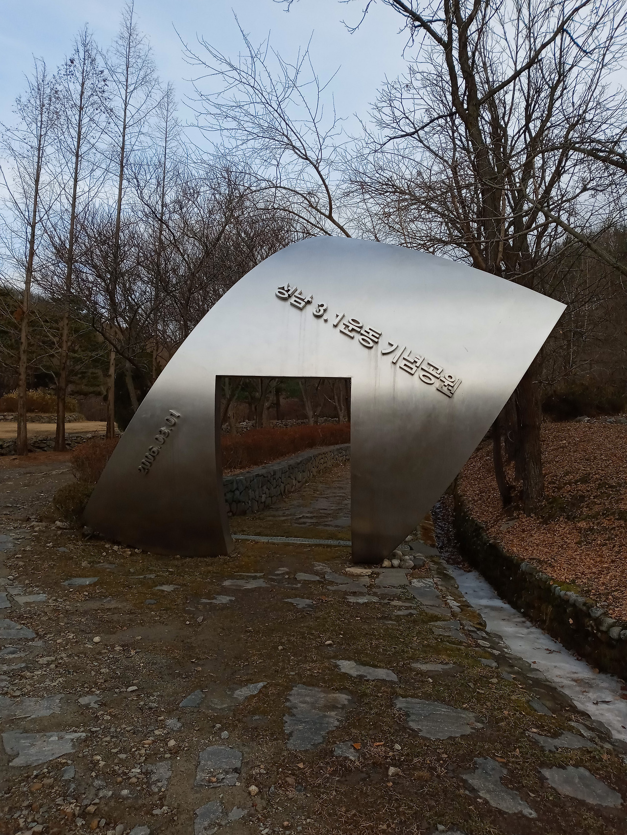 한참을 걸어 다리가 아프다고 할 즈음 성남 3.1 운동 기념공원이 나온다. 태재고개로 내려오니 처음 산으로 올라갔던 곳 근처다. 과메기를 먹었다지만 배가 고파 우렁이 쌈밥을 먹으려다 국물이 먹고 싶다 하여 부대찌개를 파는 음식점에 들어갔다. 밥 양이 적은 친구를 생각하여 삼인 분을 시키고 화장실에 다녀와 친구들 몰래 계산하려고 주인에게 살며시 다가가 카드를 내미니