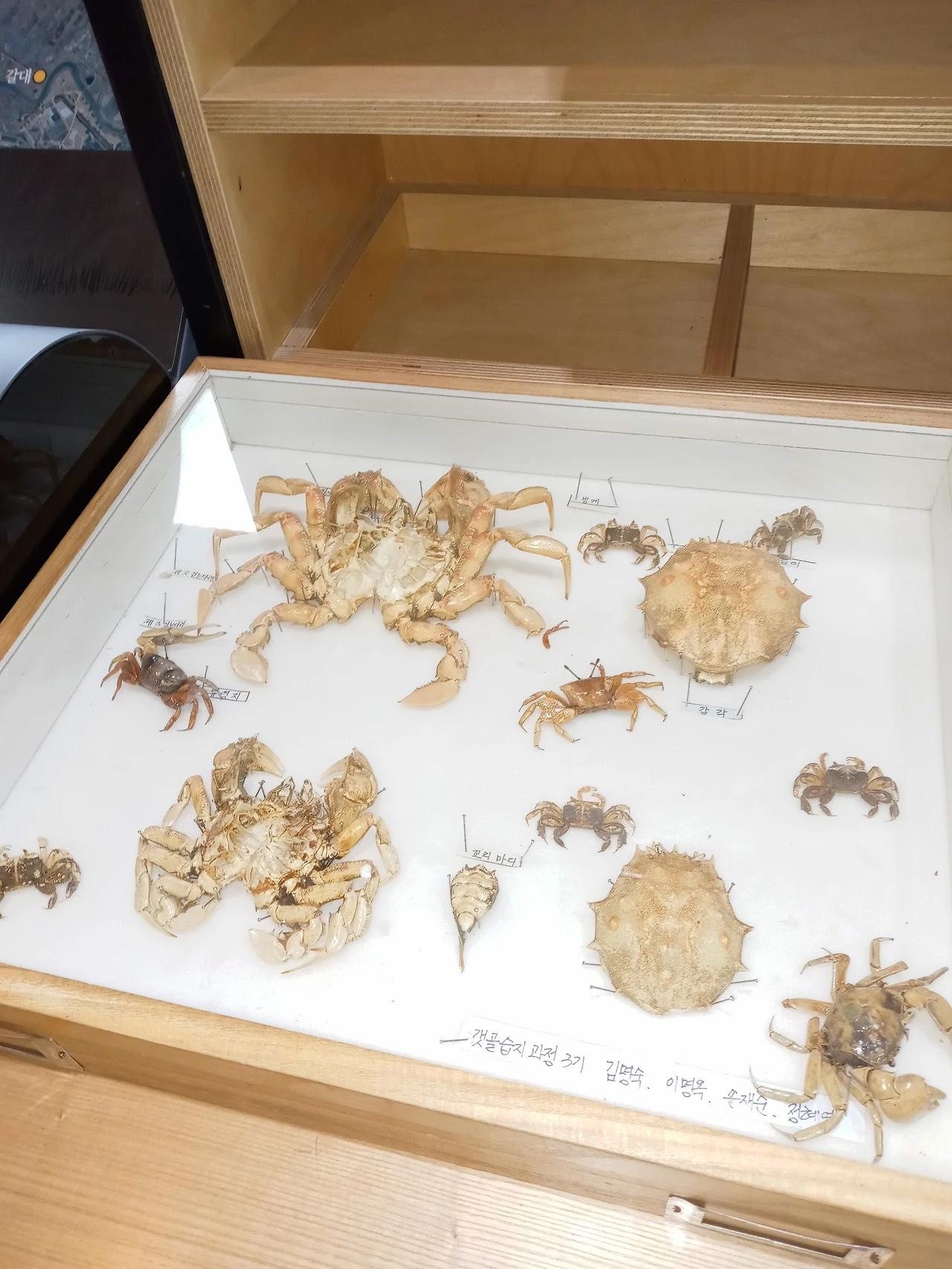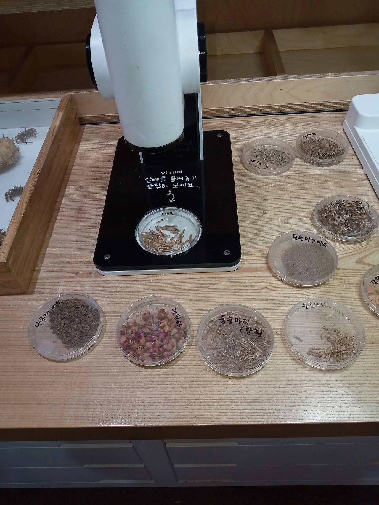 체온 측정을 하고 갯골습지센터에 들어갔다. 내 체온은 32.6도라고 했다. 남편의 체온이 38도를 넘어 체온계 고장임을 알았다. 들어가지 못하게 해서 조금 기다렸더니 그 체온계가 이제 남편의 체온을 너무 낮게 나타내서 어이없었다. 현미경으로 나문재, 해당화, 퉁퉁마디 씨앗과 약쑥과 갈대, 칠면초 마디를 볼 수 있게 해 놓아 한참을 들여다보았다. 농게, 밤게, 칠게 등도 볼 수 있도록 전시를 해 놓았다. 거기에서 저어새 사진을 발견하여 친구에게 보여주니 웃는다. 주둥이가 한 팔 길이는 되겠다며.