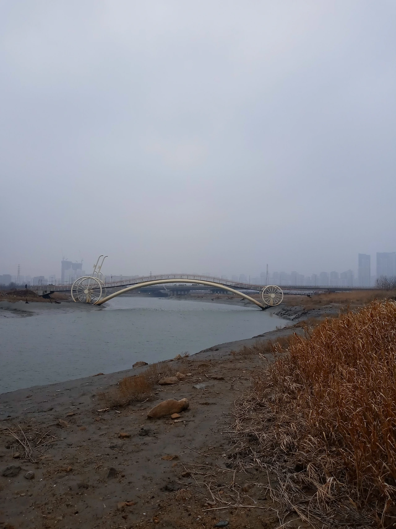 빈폴 옷의 상표처럼 생긴 자전거 모양 다리가 보인다. 친구들과 사진을 찍어본다. 늙은 모습이 싫다 하는 친구에게 세월이 지나 지금의 사진을 보면
