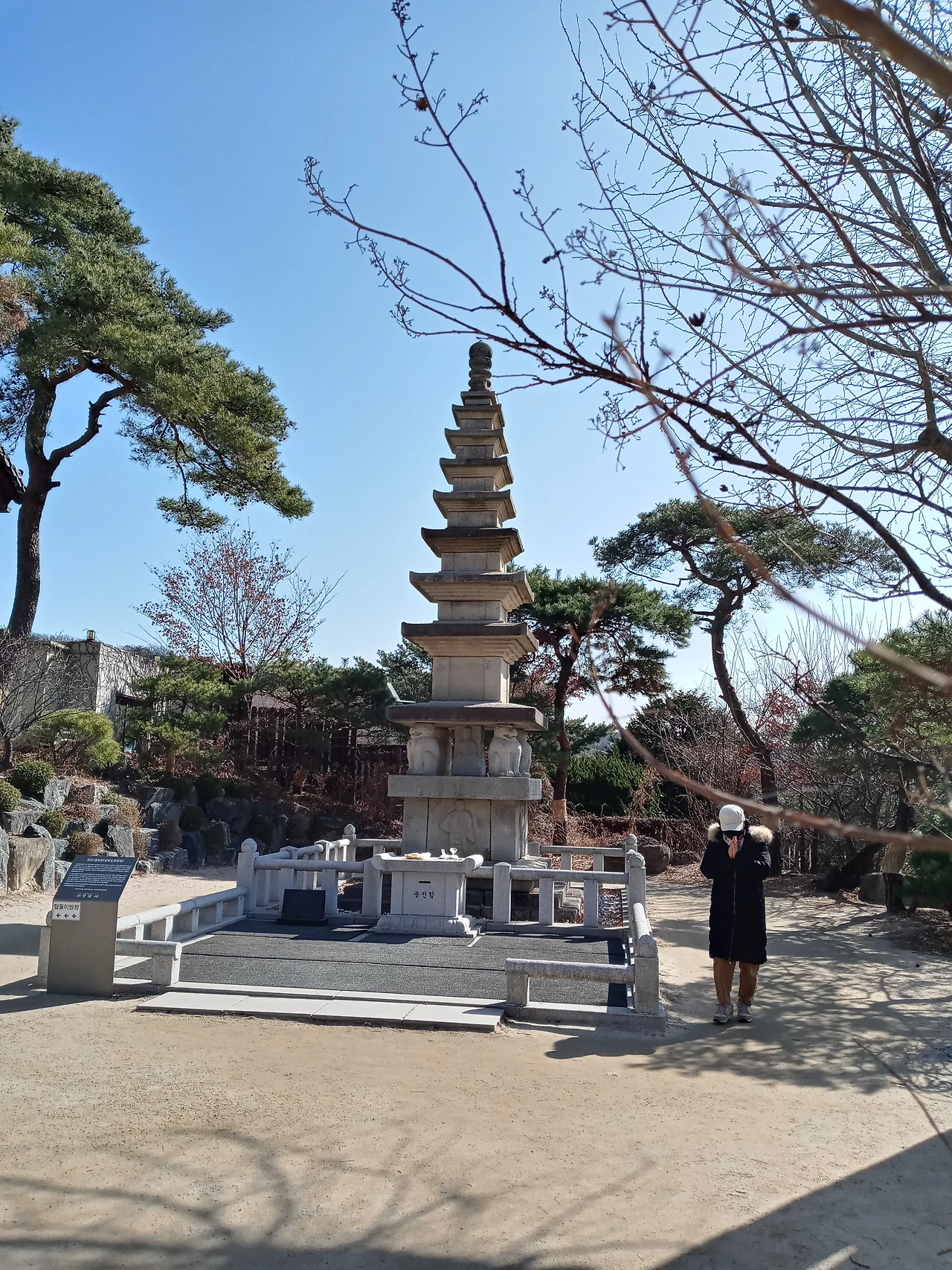 오늘은 미세 먼지도 없는 쾌청한 날이라 더 좋았다. 절을 한 바퀴 돌고 입구 쪽으로 가니 호박 넣은 팥 시루떡을 한 개씩 가져가라고 한다. 가져오는데 따끈따끈하다. 그냥 먹을 수가 없어 탑의 불전함에 조금의 돈이나마 넣어 시주를 했다.
