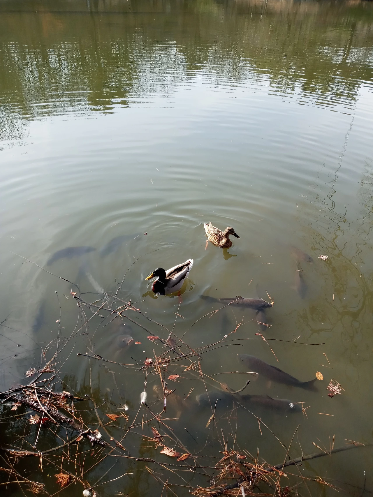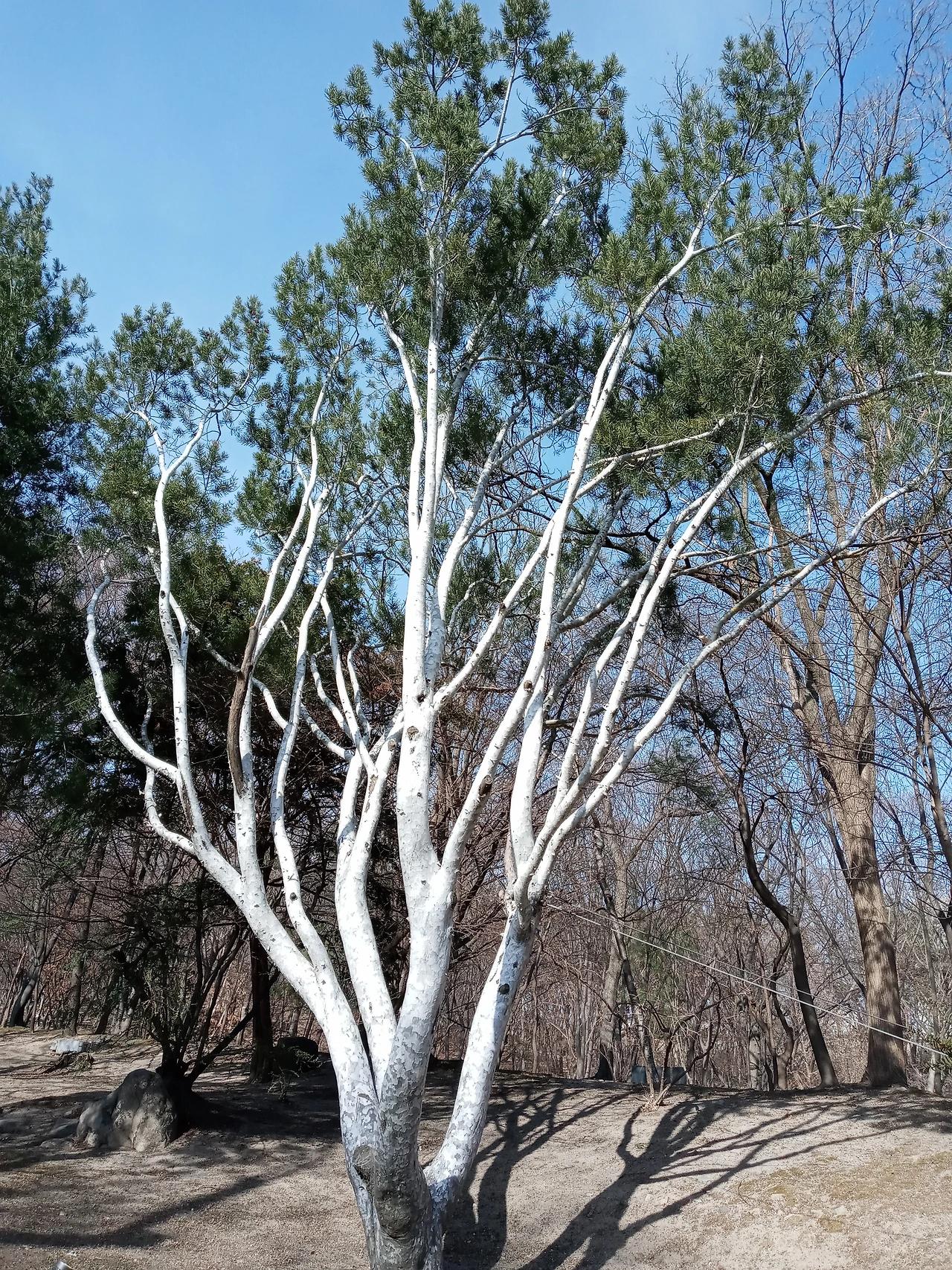 춘당지에는 잉어가 배가 고픈지 몰려들었다. 청둥오리마저 근처에서 먹이를 달라는 듯 우리 쪽으로 모여 길상사에서 받은 팥시루 떡의 팥을 던져주니 잠수하여 떨어지는 팥을 맛있게 먹는다. 지나는 길에 백송을 보았는데 나무껍질이 모두 하얗다. 위의 솔잎은 초록으로 대비가 되어 아주 신기했다.