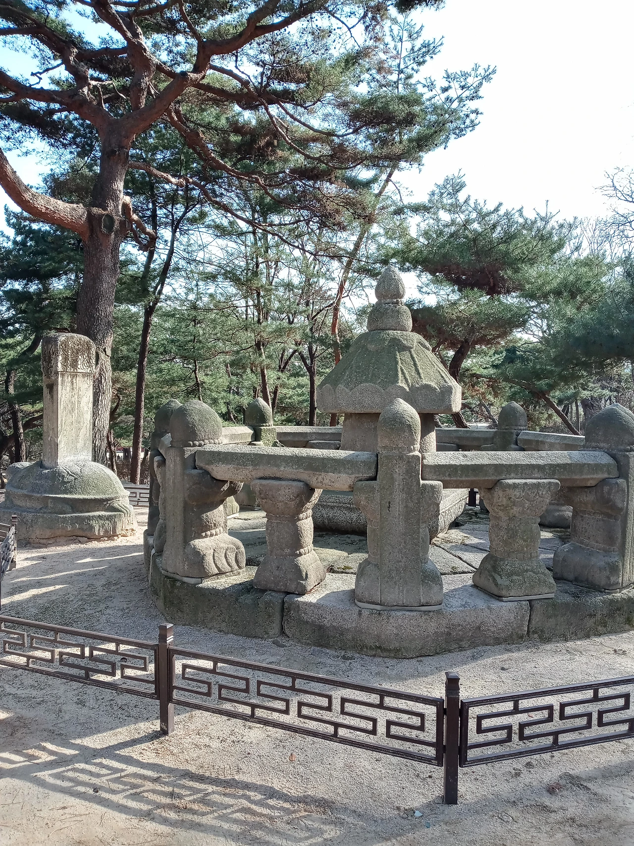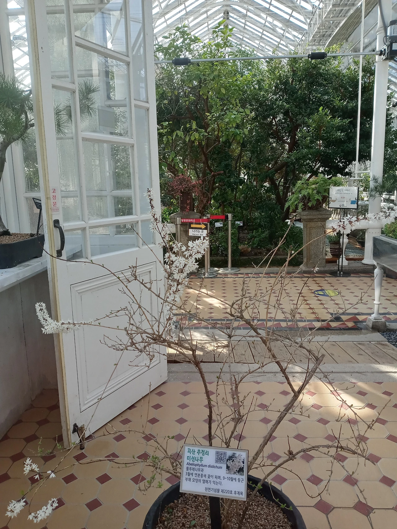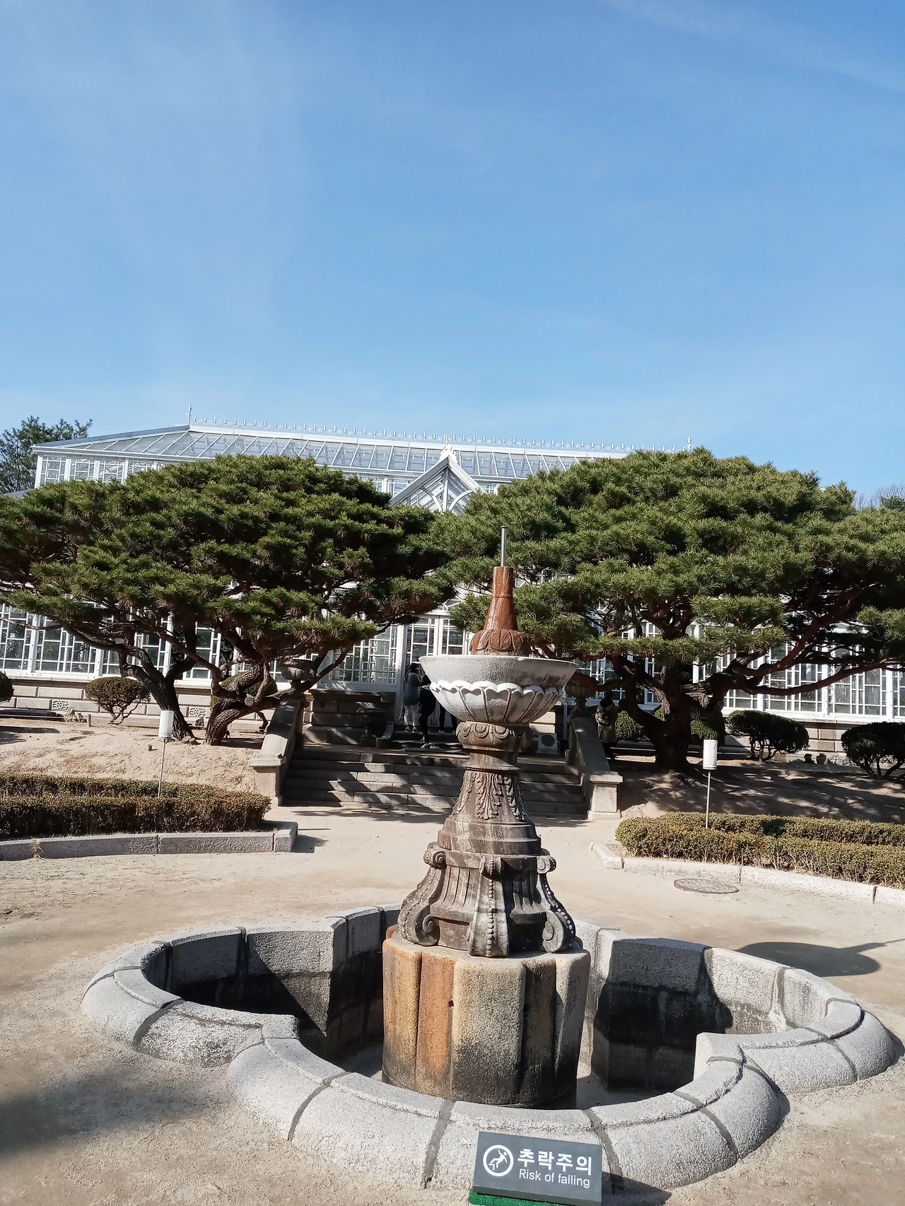 다시 창경궁으로 돌아오다 앙부일구를 보고 성종 태실과 태실비를 보았다. 유리로 된 대온실은 우리나라 최초의 온실이라던데 폐쇄를 해서 열린 창문으로 온실 내부를 찍어보았다. 미선나무의 꽃이 하얗게 피어 있어 신기했다. 마음 같아선 코를 킁킁거리며 향기를 맡고 싶었다.