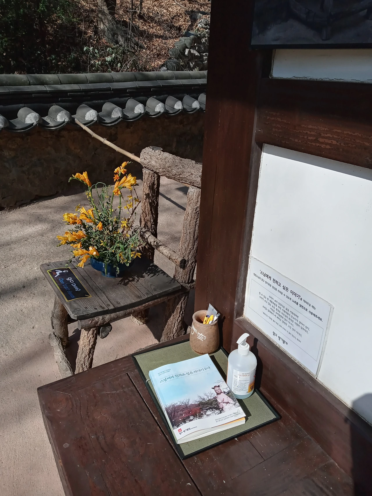 내가 법정 스님을 알게 된 것도 <무소유>라는 책을 통해서였다. "맑고 향기롭게" 시민운동을 하였으며 무소유의 삶을 실천하신 분으로 송광사나 강원도 산골을 거쳐 2010년 3월 11일 길상사 행지실에서 입적하실 때까지 머문 곳이다. 진영각에 가서 속세명이 박재철 임을 지갑 속 주민등록증에서 보았다. 참으로 청빈한 삶을 사셨다는 것을 유품을 통해서도 느꼈다.