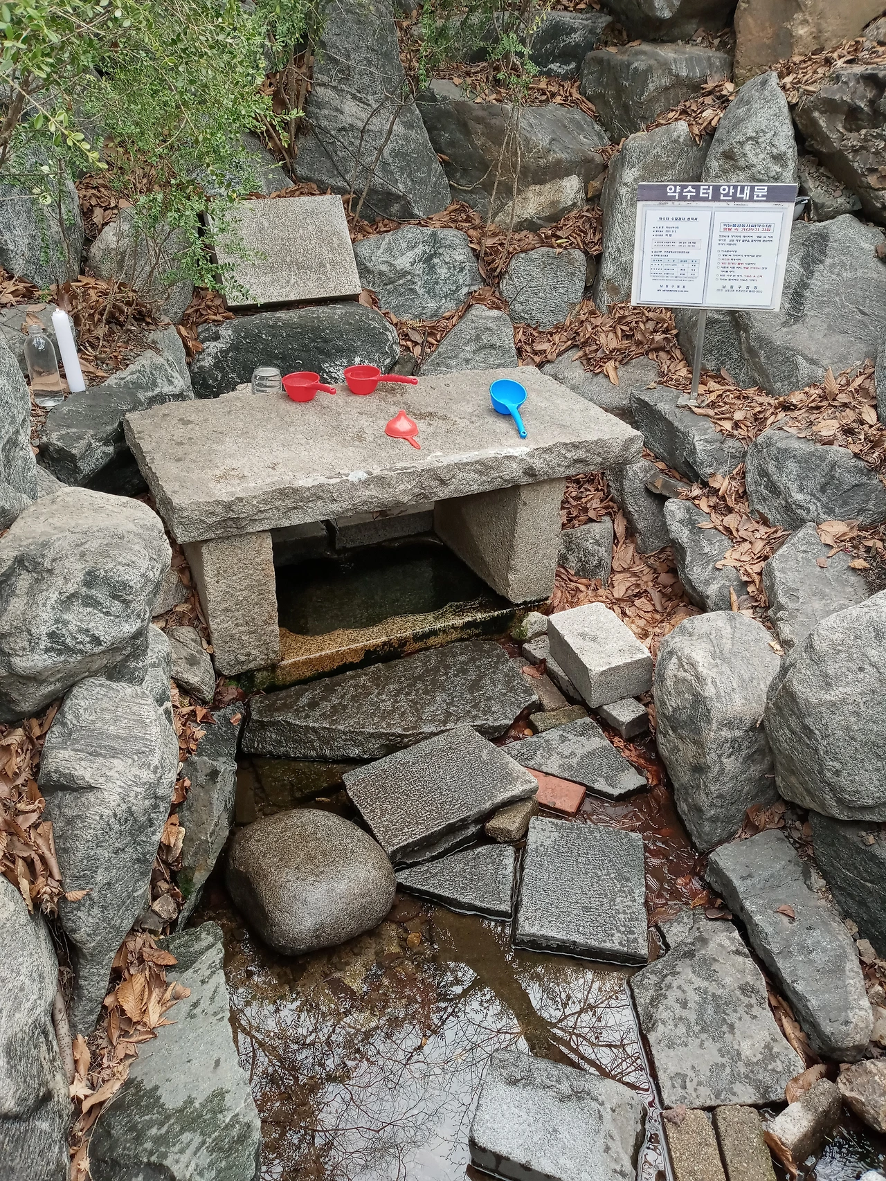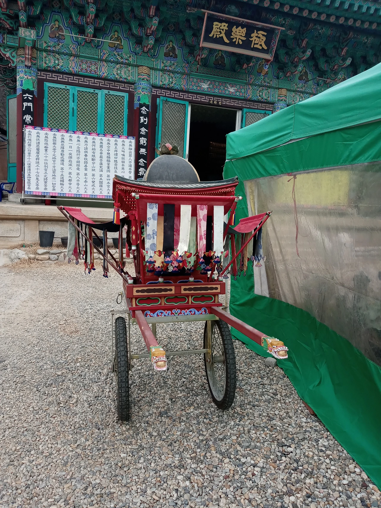 생각보다 절이 웅장하다. 약수터의 물맛이 참 좋다. 절도 교회처럼 예배를 보듯 마당에 많은 신자가 모여 "나무아미타불"을 하며 예를 갖추고 신성하게 예불을 드리고 있다. 어, 그런데 가마가 보인다. 무슨 연유로 가마가 거기에 있는지 모른다. 궁금한데 한참 예불 중이라 물어볼 수도 없어서 사진만 찍고 둘레길로 나섰다.