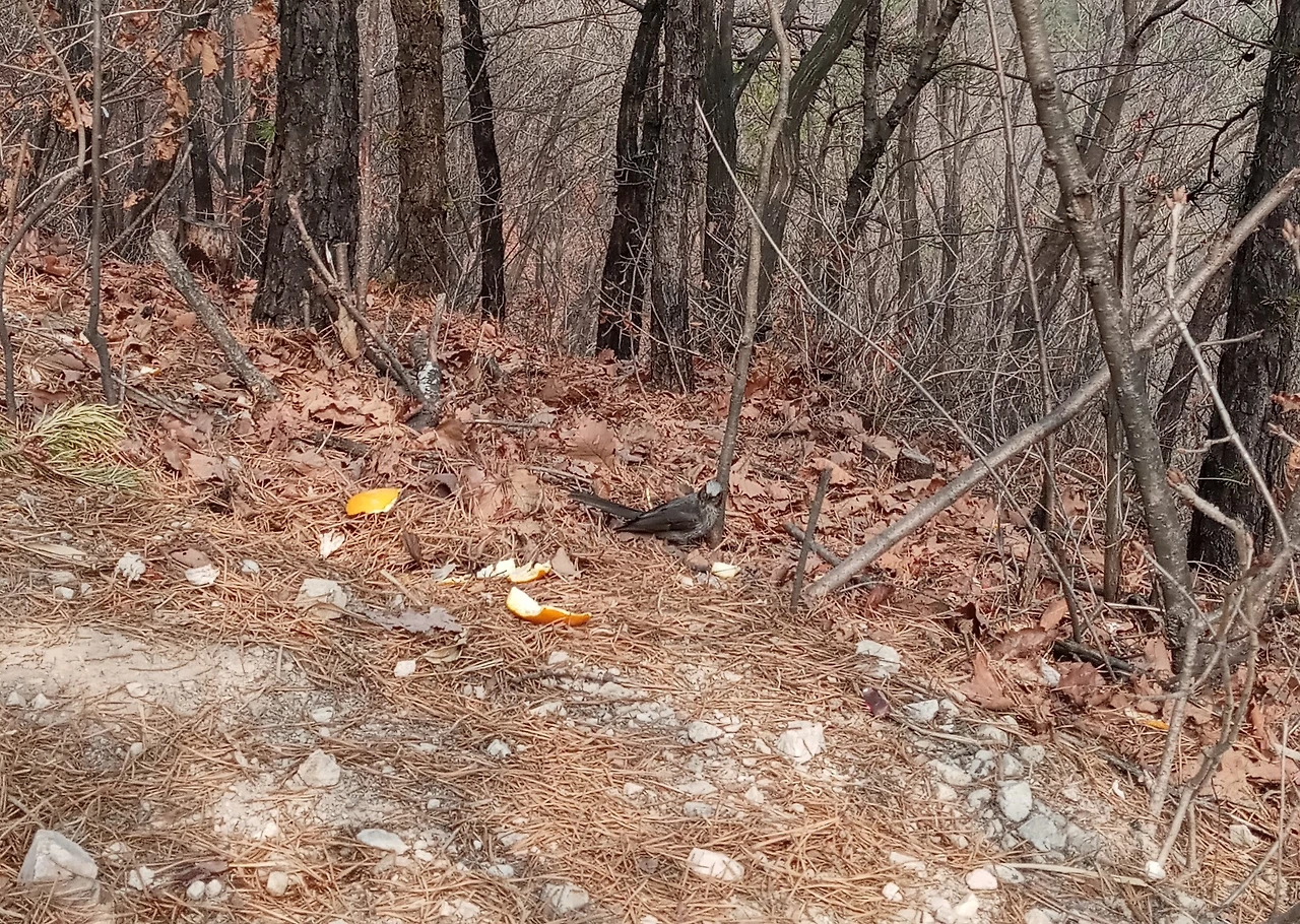의자 근처에 누군가 먹다 버린 귤이 있는지 직박구리 한 마리가 콕콕 찍어 먹는다. 내가 가까이 다가가 사진을 찍어도 놀라지 않고 가만히 모델이 되어준다.