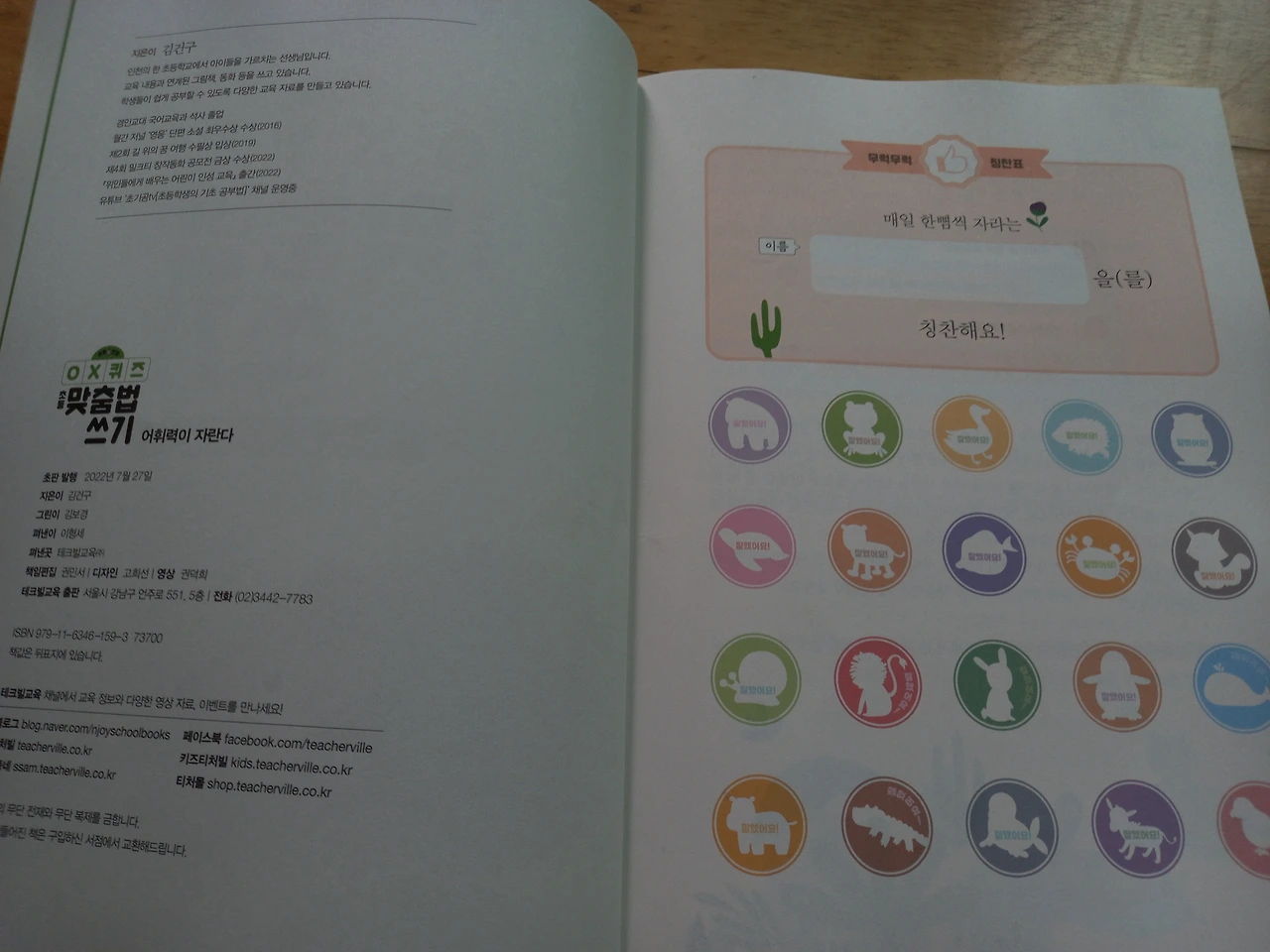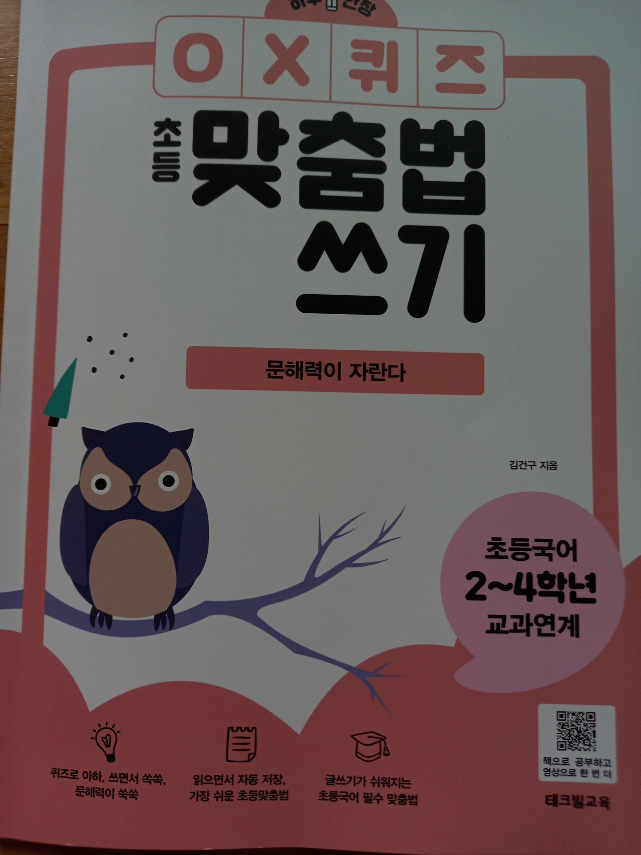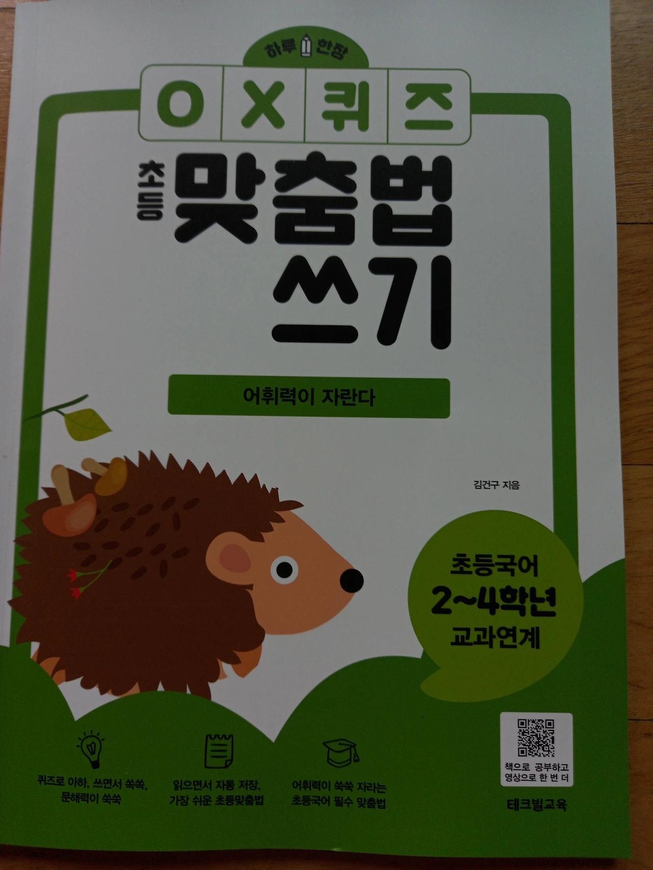 큰아들이 쓴 책이 나왔다. 초등학생에게 문제집처럼 풀어보며 맞춤법을 알 수 있는 책이다. 나처럼 성인이더라도 맞춤법이 자꾸 헷갈린 사람도 보면 좋다. 2권인데 가격은 각 한 권당 7500원이고 아들(김건구)이 지었다. 테크빌 교육 출판사에서 펴냈다.
