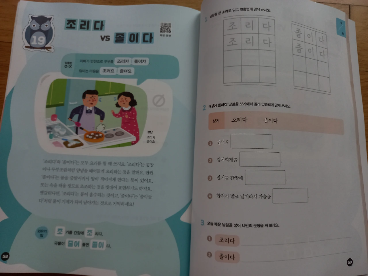 소리가 같지만 다른 낱말로 '조리다' 와 '졸이다'가 있는데 요리할 때 쓰는 낱말이다. 두부조림처럼 양념을 배어들게 요리하는 것을 말하는데 물을 증발시켜 양아 적어지게 하는 것은 '졸이다'이다.