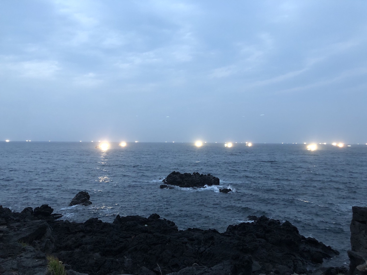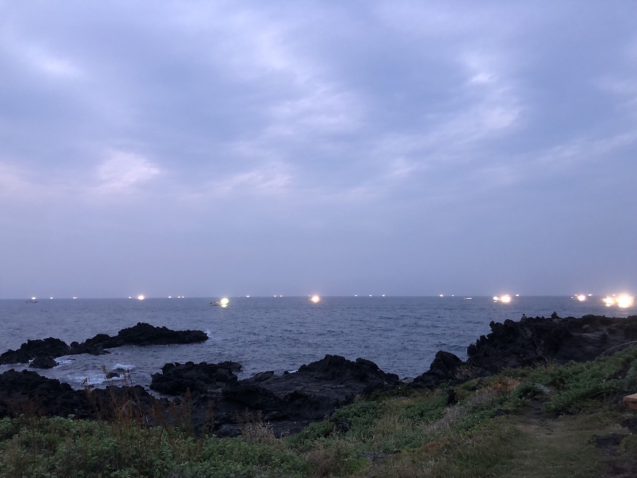 저녁 바다를 보며 해안도로를 걷다 보니 바다 위에 불을 밝히고 떠 있는 수 없이 많은 배들이 보인다. ‘이거구나...! 은기 말이 맞았네.’ 혼잣말을 중얼거렸다. 노희경 작가의 tvN 드라마 <우리들의 블루스>에서 6살 은기에게 제주도 출신 아빠 만수가 제주에는 소원 100개를 달어주는 달 100개가 뜨는 곳이 있다고 말한다. 사람들은 그건 다 거짓이라고 하지만 은기는 아빠를 믿는다. 교통사고로 병원에 입원한 아빠 만수와 그 딸 은기를 위해 마을 사람들이 달 100개 있는 곳에 은기를 데려간다. 만수가 말한 달 100개는 지금 내가 보는 저 풍경처럼 밤바다에 뜬 배가 낚시를 위해 전등을 밝힌 모습을 비유한 것이다. 드라마 속 과장이라고 생각했는데 진짜 달이 100개다.