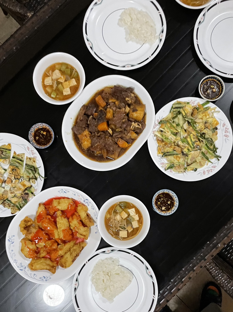보내주신 주소를 받아보았더니 엊그제 친구와 산책했던 바로 옆동네길래 어차피 또 저녁도 많이 먹게 될 것 같아 산책 겸 걸어갔다가 도착해서 무서운지도 모르고 어딜 걸어왔냐고 약간 (애정의) 잔소리를 들었다. 쭈뼛쭈뼛 뭐 도와드릴 것이 없을지 돌아보다 테이블 세팅을 도왔다. 갈비찜에 파전에 탕수육, 된장국, 볶음면, 볶음밥, 케이크까지 추석이 지난주 아니었나요? 아니면 혹시 제 생일인가요?(다른 분 생일이었다. 그렇지만 속으로 내가 더 행복했다.) 맛있게 밥을 먹고 재미있는 여러 이야기를 듣다가(비슷한 시기에 이민 와서 어려서부터 모두 가족같이 지내왔다고 하셨다.) 설거지까지 도와드리고 마치 명절에 본가에 다녀온 사람처럼 양손 무겁게 귀가했다. 점심에 교회에서 김치를 종류 별로 받고 마파두부까지 받았는데! 전용 냉장고가 생겨서 다행이었다.