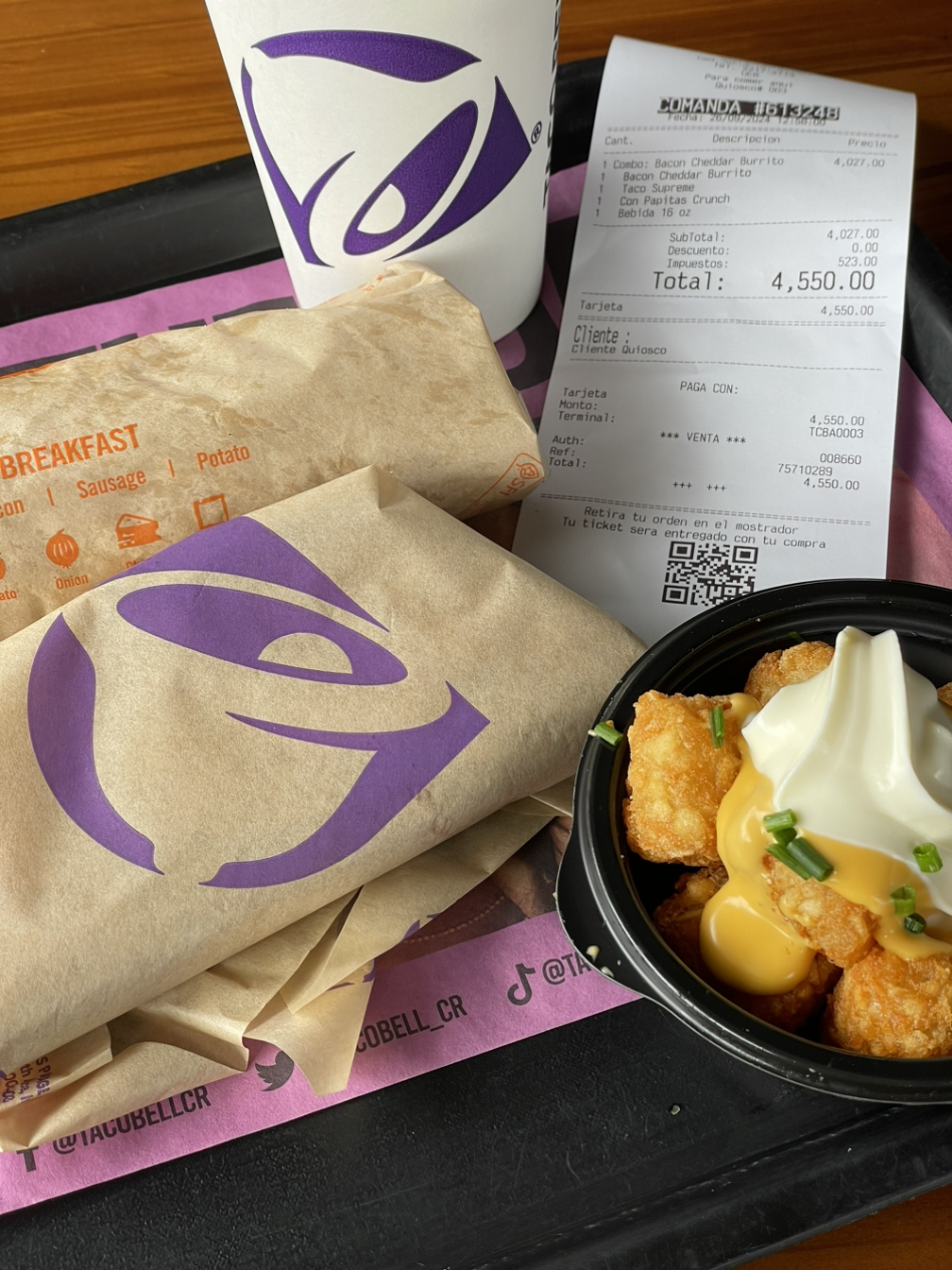 오늘은 벼르고 벼르던 타코벨에서 점심을 먹어보고자 결심했다. 미국에 있을 때 한 번 먹어보고 이게 끼니가 되냐! 차라리 치폴레나 판다익스프레스를 먹지. 다시는 먹지 않다가 막상 한국에서 찾아볼 수 없으니 가끔 궁금했다가 이곳에선 맥도널드만큼 많은 -까지 쓰고 챗gpt한테 물어봤더니 코스타리카: (맥도널드) 125개 (타코벨) 22개, 한국 (맥도널드) 400개 (타코벨) 4개라고 하니 이곳에도 타코벨이 그렇게 흔한 것은 아닌가 보다. 타코벨을 점심 식사로 고른 것은 0) 그냥 멕시칸 음식은 언제든 먹고 싶다는 이유도 있지만 1) 그저께 SODA에서 주문에 성공해서 용기가 생겼고 2) 다른 사람들의 대화를 통해 타코벨은 키오스크를 사용한다는 정보를 입수했으며 3) 미리 페이지에서 메뉴를 공부+고민해갈 수 있기 때문이다. 점심 메뉴 정하는데 이렇게 거창한 사유가 필요한가 싶지만 필요하다. 그렇게 수업을 듣고 고속도로 길을 건너와서 타코벨에 도착해 보안관 아저씨가 반겨주는 문을 지나 키오스크를 마주했다.