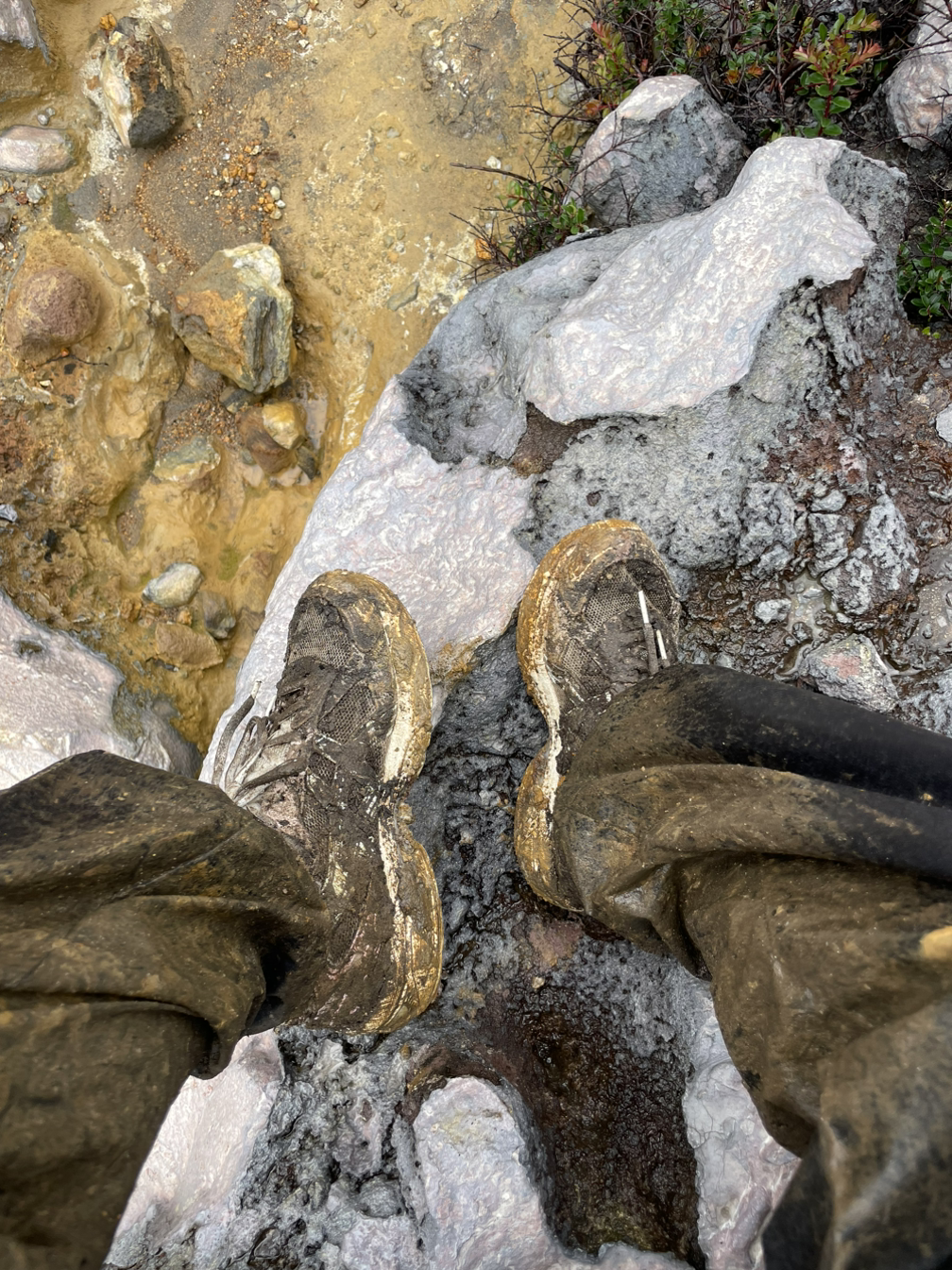 처음처럼 발에 진흙과 물이 안 들어와서 발에 감각이 없어진 것인 줄 알았는데 진흙이 들어오고 굳고 위에 물이 쏟아지고 또 굳고 해서 나름의 보호 신발이 완성된 것이었다. 그래서 종아리까지 빠지는 진흙탕도 신경 쓰지 않고 최대한 넘어지지 않는 길로 걸어가기 시작했는데, 아무리 그래도 그 진흙탕 물이 신발에 들어오고 바지에 범벅되는 느낌은 익숙해지지가 않았다. 맨몸으로 걸어도 쉽지 않았을 것 같은데 준비물에 2L의 물(!!!), 갈아입을 옷, 수영복, 랜턴 등 너무 많은 것들이 있어서 가방까지 무거워 허리가 너무 아팠다. 그 위에 진흙이 묻은 것이 또 굳어져 가방과 바지, 신발 모든 게 점점 더 무거워지기만 했다.