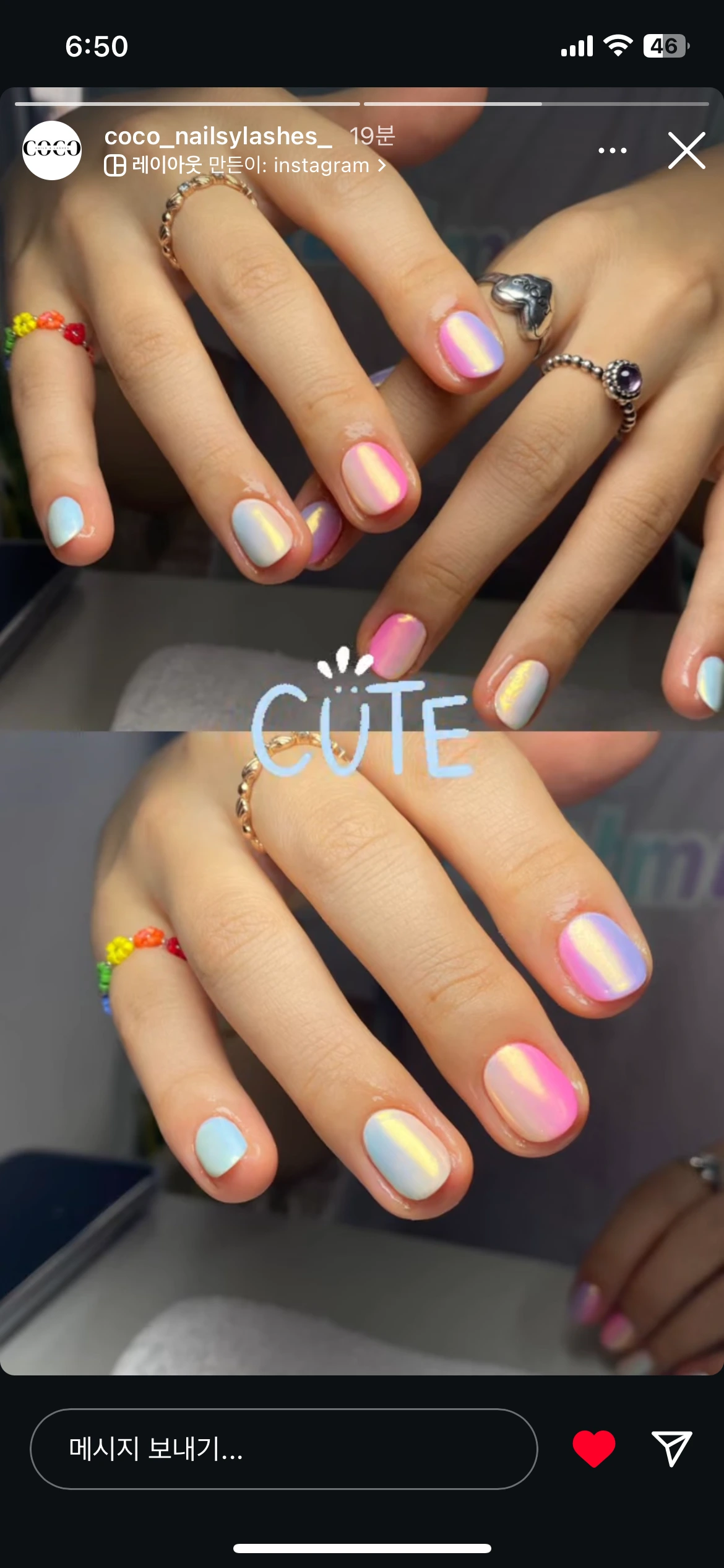 그 사이 손톱 컬러는 어느 정도 마무리가 되었다. 하고 싶은 말이 많았지만 삼키고 삼켰는데 알고 보니 마지막에 반짝이를 위에 문지르는 타임이 있었다! 그걸 고려해서 가운데 그러데이션도 대충 넣고 컬러도 좀 쩅한 걸로 고른 것이었나 보다. 휴~아직도 손톱 아래가 빨갛게 따가웠지만 생각보다 결과물이 마음에 들었다. 그렇지만 한국 네일샵과 다른 점은 사진을 너무 열심히 안 찍는다는 것이었다! 예쁘게 찍어서 올려야 또 사람들이 많이 오고 그러죠! 아쉬운 마음에 집에서부터 챙겨 온 공주세트를 주섬주섬 꺼내서 하하 나 사진 좀 찍어줘~ 했더니 너 생일이야? 아니.. 그냥 가져와본 건데..