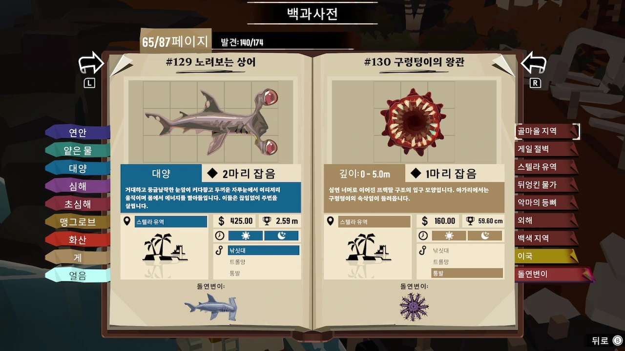 드렛지의 바닷속에서는 평범한 생물뿐 아니라 돌연변이 개체들이 존재한다. 미지의 무언가의 영향을 받은 듯한 기괴한 모습의 돌연변이는 인간의 정신과 신체를 피폐하게 한다는 설정이다. 이들은 일반 개체보다 더 비싼 값을 받고 팔 수 있지만, 그만큼 등장 확률이 낮기에 원하는 돌연변이종을 얻기 위해선 시간을 다소 투자해야 한다.