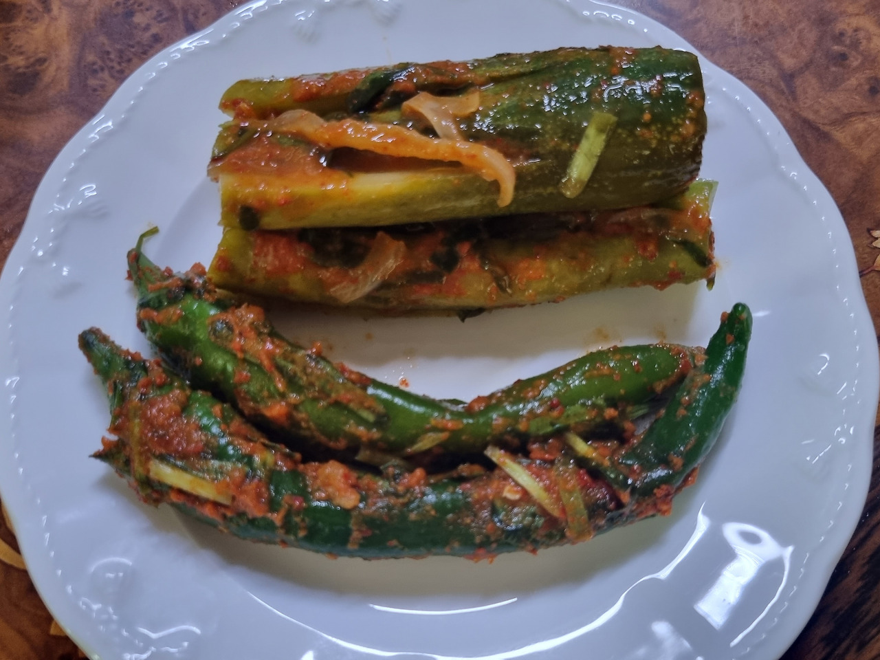 고추 소박이는 오이소박이 담글 때 옆에서 같이 만든다. 오이 고추 가운데 칼집을 한 개 정도 내고 소금물에 절여 속을 채워 넣으면 고추 소박이가 완성이 된다. 아삭아삭 한 식감에 맵지 않아서 입맛 없을 때 먹기 좋다. 매운 것을 못 먹는 내 입맛에도 딱인 걸 보면 누군들 좋아하지 않을까. 입맛 없을 때 아삭하고 시원한 오이로 만든 소박이를 담가보시라. 그리고 오이 고추로 만든 고추 소박이도 괜찮다. 밥 한 그릇은 뚝딱할 만큼 입맛이 돌아올 것이다. 오이가 익어가는 계절이라 얼른 다른 것도 만들어 봐야지.