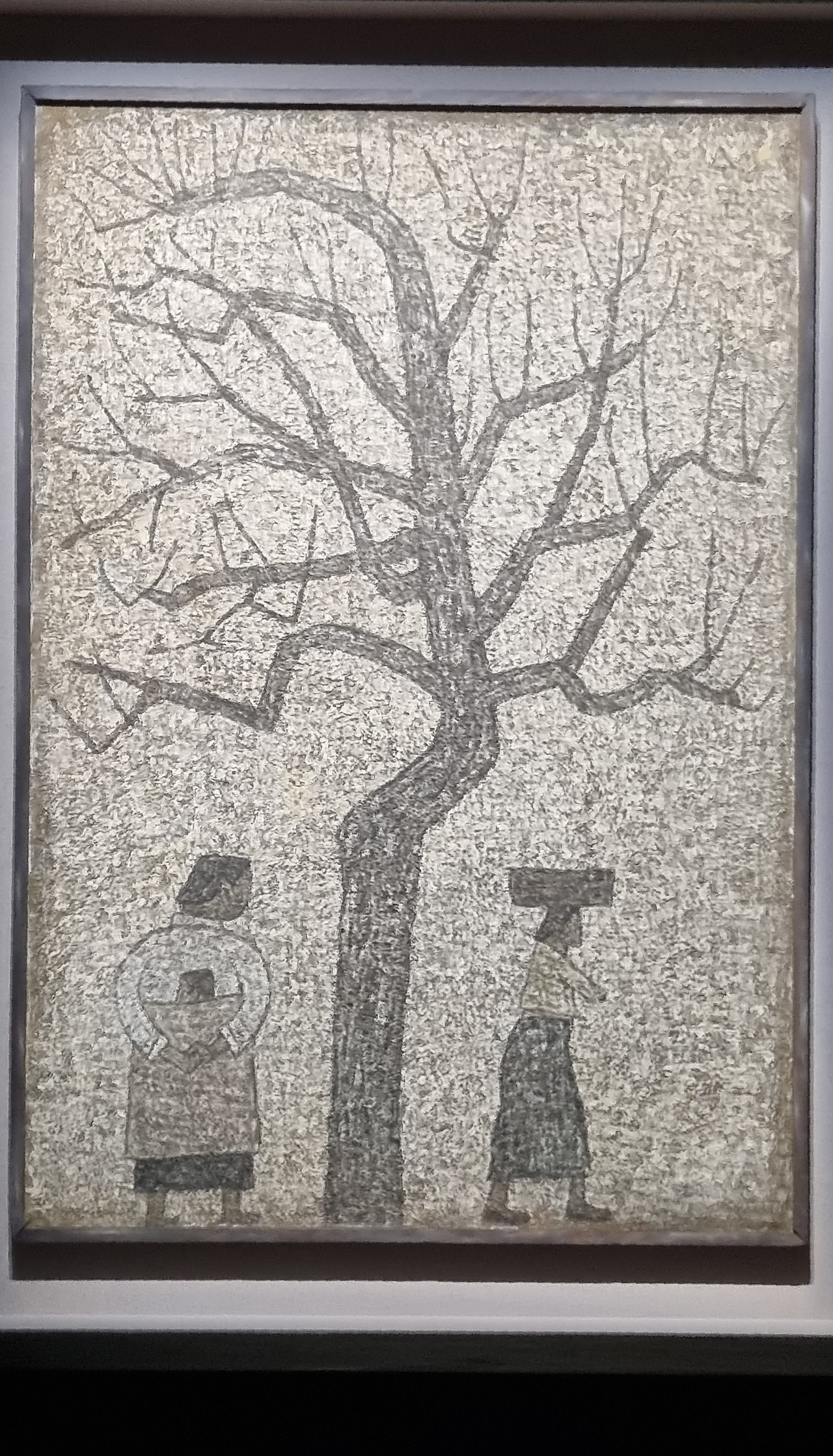 전쟁 직 후 PX에서 근무 당시 만난 인연으로 '나목'을 써서 등단 한 박완서를 만날 수 있다. 이런 인연이 있나. 역시 진짜는 진짜를 알아보는 걸까. ‘나목’은 박수근을 미화해서 써 내려간 작품이나 고목인 줄 알았던 그 나무가 알고 보니 나목이었다는 찬사를 보냈다. 나는 고목과 나목의 차이를 생각해 보았다. 고목古木은 키가 큰 나무고, 여러 해 자라 더 크지 않을 정도로 오래된 나무다. 반면 나목裸木은 잎이 지고 가지만 앙상히 남은 나무다. 이 차이가 무얼까? 고목은 더 이상 성장을 하지 않음을 말하는 것이고 나목은 지금은 헐벗었지만 살아있는, 미래를 기약할 수 있는 나무라는 뜻이 아닐까? 박수근을 향한 최고의 찬사라 한다.
