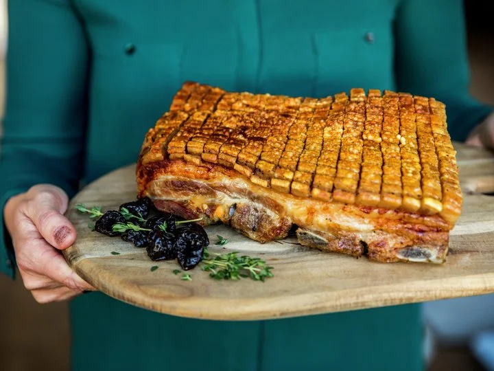 위 사진에는 없지만 흔히들 곁들여 먹는 것이 말린 자두와 사과 등의 달콤한 과일이다. 생으로 먹지는 않고, 이 역시 ribbe의 그 시그니쳐 바삭한 껍데기를 완성하는 마지막 단계에 같이 오븐에서 익힌다. 그러면 고기에서 나온 기름과 육즙을 머금고 익혀지면서 달콤함이 배가된다. 이렇게 따뜻한 과일들을 통삼겹갈비구이와 함께 먹으면 상큼하고 달짝지근 하면서도 감칠맛있게 고기의 무거움을 잡아주는 역할을 한다.