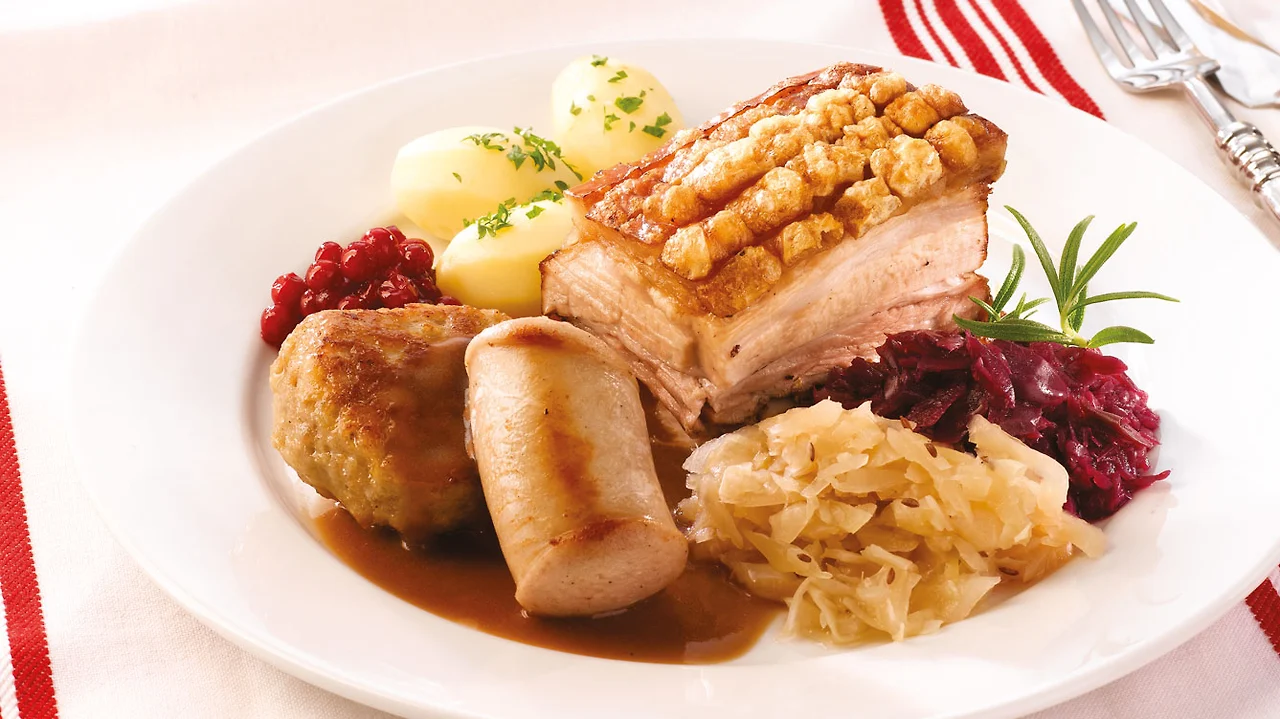 메인인 ribbe와 함께 준비하는 것 중의 첫번째는 소세지이다. 한 마디로 고기에 고기를 곁들여 먹는다는 소리다. 위 사진에도 나와 있는데, 특히 크리스마스 시즌이 되면 julepølse [율레폴세/펄세] 라고 해서 크리스마스를 대표할 수 있는 향신료 (e.g. 아니스, 정향, 계피, 육두구; anise, clove, cinnamon, nutmeg)를 곁들인 두꺼운 소세지를 판매한다. 이것을 후라이팬에 굽고 나서 마지막에 ribbe가 있는 오븐에 넣어서 함께 속살을 데워서 준비한다.
