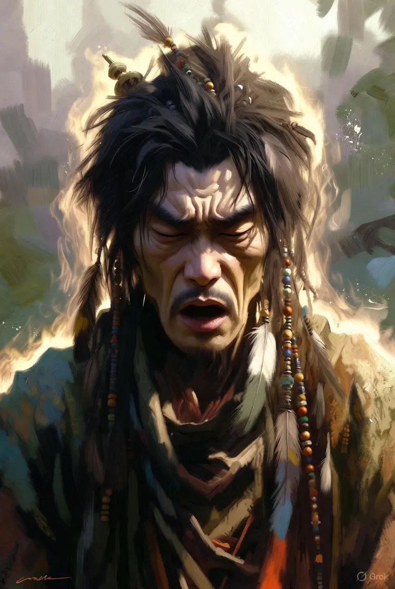 고대 주술사의 입에서 발화된 언어와 리듬은 사람들을 트랜스 상태로 빠트려. 무당이 왜 귀신을 믿는 줄 알아? 스스로에게 최면을 걸어서 황홀경에 빠지기 때문이야. 이승에는 없는 세상을 체험하는 거지. 그들 처지에서 보면 귀신은 존재하는 존재야. 배우들이 배역에 몰입하는 것과 마찬가지지. 그때 그는 자기가 아닌, 캐릭터가 되는 거야.