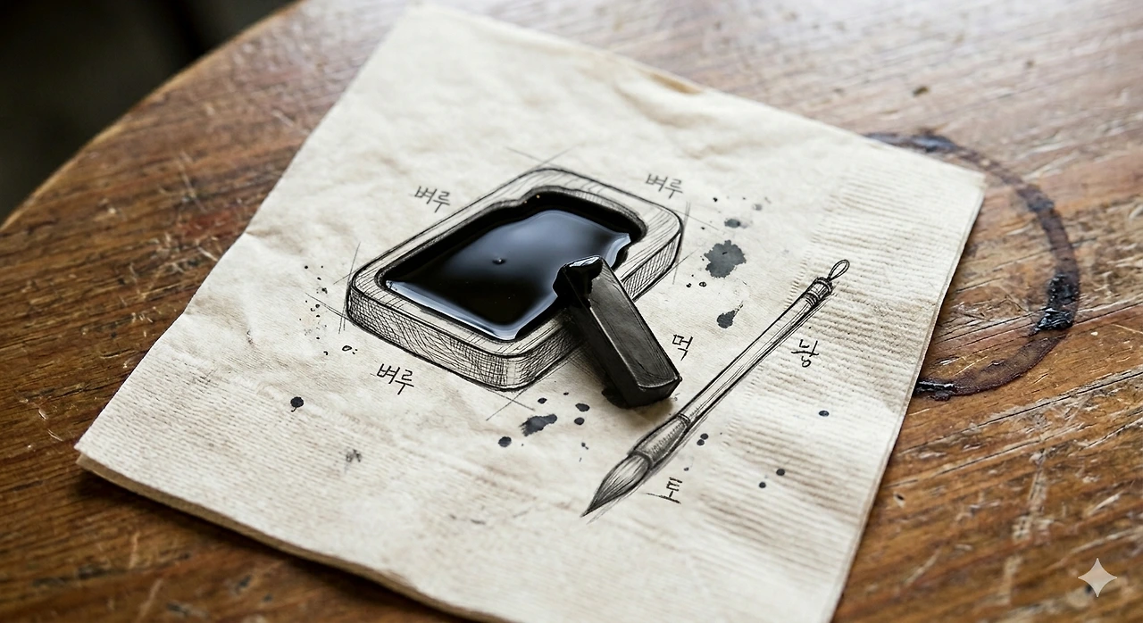 하지만 평생 정제된 법도와 완벽한 미(美)를 추구해 온 조부에게, 통제되지 않는 왼손의 서툰 획은 스스로 용납할 수 없는 굴욕이었을지 모른다. 결국 조부는 고개를 저으며 붓을 꺾으셨고, 사랑채를 감돌던 묵향은 서늘한 침묵 속에 가라앉았다. 주인을 잃은 벼루와 붓은 가문의 법통을 잇지 못한 방백(傍白)처럼 자연스레 어린 나의 차지가 되었다.