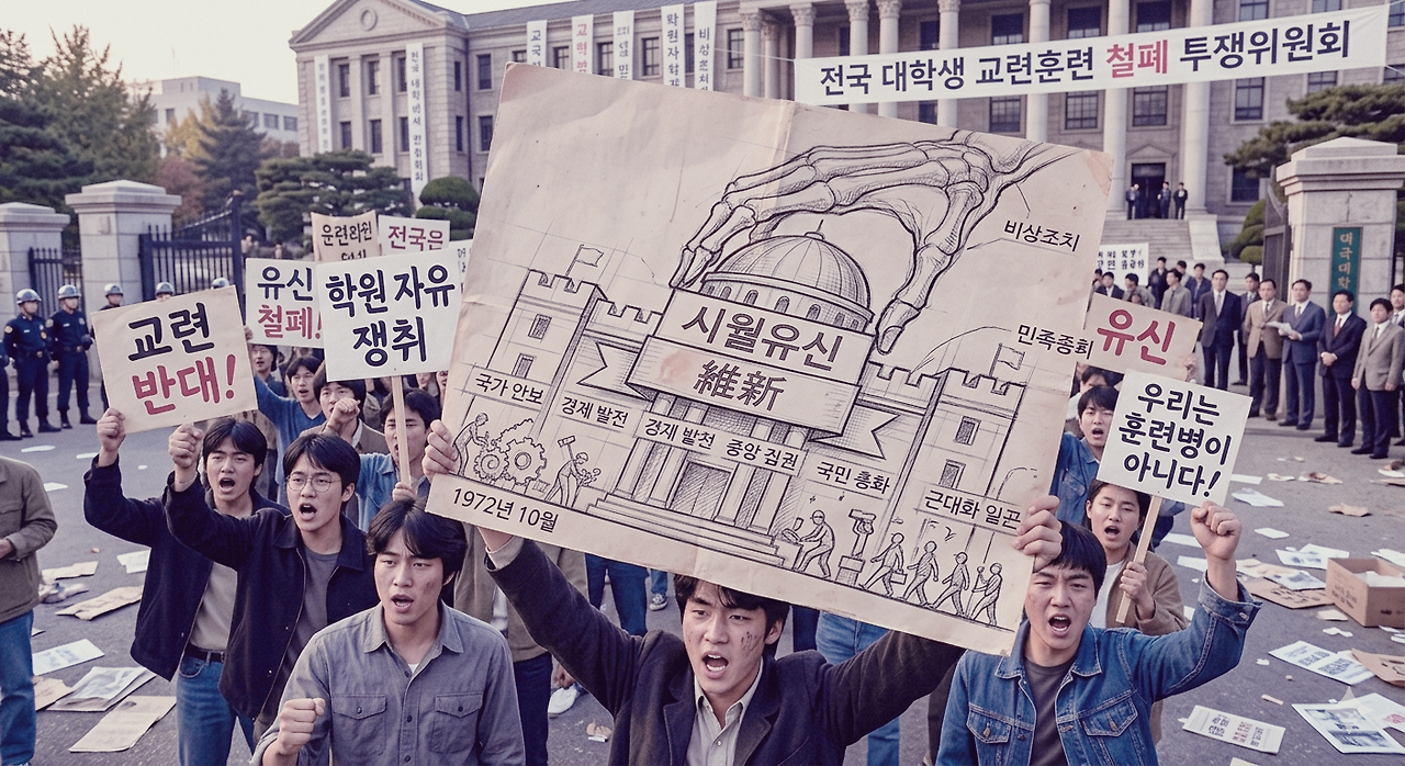 대학 가는 그야말로 화산의 분화구와 같았다. 6월의 태양 아래 스크럼을 짠 청년들의 이마에는 식지 않는 분노가 맺혀 있었고, 교정마다 나붙은 대자보는 시대를 향한 서늘한 격문이자 스스로를 역사의 제단에 바치겠다는 처절한 제문(祭文)이었다. 교련 반대와 부정선거 규탄이라는 구호는 이제 단순한 항의를 넘어 체제 자체를 부정하는 근원적인 질문으로 진화하고 있었다.