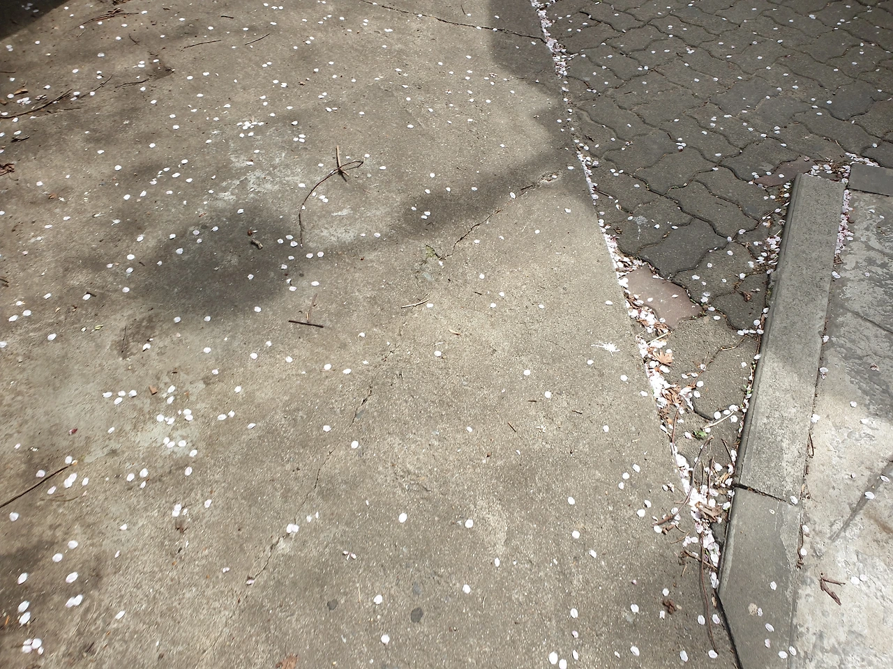 얼마 전 빨래를 하고 널다가 창문을 열었다. 그 창을 열면 한 발짝 정도 떨어진 거리에 회색 시멘트 벽이 있다. 이끼 낀 담 너머에 집 머리가 빼꼼 있고, 하늘이 보인다. 오후 3시쯤엔 거기서 햇빛이 쏟아진다. 봄 냄새가 났다. 빨래 냄새와 무척 어울렸다. 짙은 회색 시멘트 벽에 점점이 하얀 것이 묻어있었다. 작고 일정한 크기였다. 바람이 불었다. 점점이 하얀 것이 날아 다녔다. 벽에도 앉고 땅에도 앉았다. 나는 고개를 좀 더 쭉 빼고서 두리번거렸다. 저만치 오른쪽에 벚꽃이 흐드러진 나무가 있었다. 바람이 불어온 곳이었다.