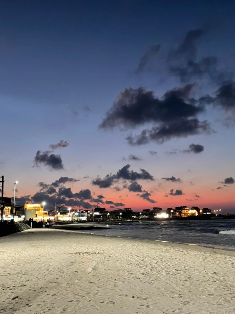 서핑샵에 딱 들어가자마자 마당에서 나를 반겨주는 서핑샵 스텝들 사장님 고기 바비큐파티를 준비하고 있었다. '와 역시 이게 제주도 여행이지' 이런 생각이 들었다. 그리고 나는 고기와 술 한잔을 하며 자기소개를 하고 사람들과 친해질 수 있었다. 그렇게 서핑샵에서는 밥을 먹고 3분 정도 걸으면 바로 바다가 나오는데 2차 할 사람들은 바다로 향했다. 편의점에서 맥주와 과자를 사서 바다 앞 데크에 앉아서 얘기를 하며 바다도 구경했다. 딱 내가 생각한 제주생활이었다. 그리고 사람들도 좋았고 나랑 같이 방을 쓰는 여자 스텝도 너무 좋았다.