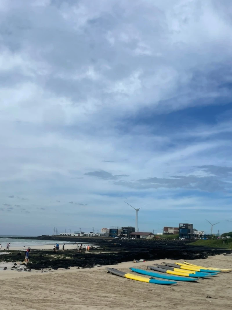 제주도 동쪽은 서쪽에 비해 조용조용하고 아늑한 느낌이다. 그리고 내가 머물렀던 월정리는 시골동네에 아늑한 동네였다. 그래서 여러 서핑샵들이 많이 있고 바다 위에서 많이 보는 얼굴들이니까 다들 인사를 하고 다닌다. 이런 따스한 동네였다. 서핑을 타며 햇빛이 강해 모자도 쓰고 선크림도 바르지만 의미 없게 살이 탄다. 육지에 있는 내 친구들이 인스타에 내 일상을 올리면 다들 제주도민 다 되었다고 장난식으로 얘기하곤 했다. 나는 여행객 느낌이 아닌 그 동네에 현지인 느낌으로 지내고 싶어서 이 여유롭고 이 동네에서만 지내는 게 너무 만족스러웠다.