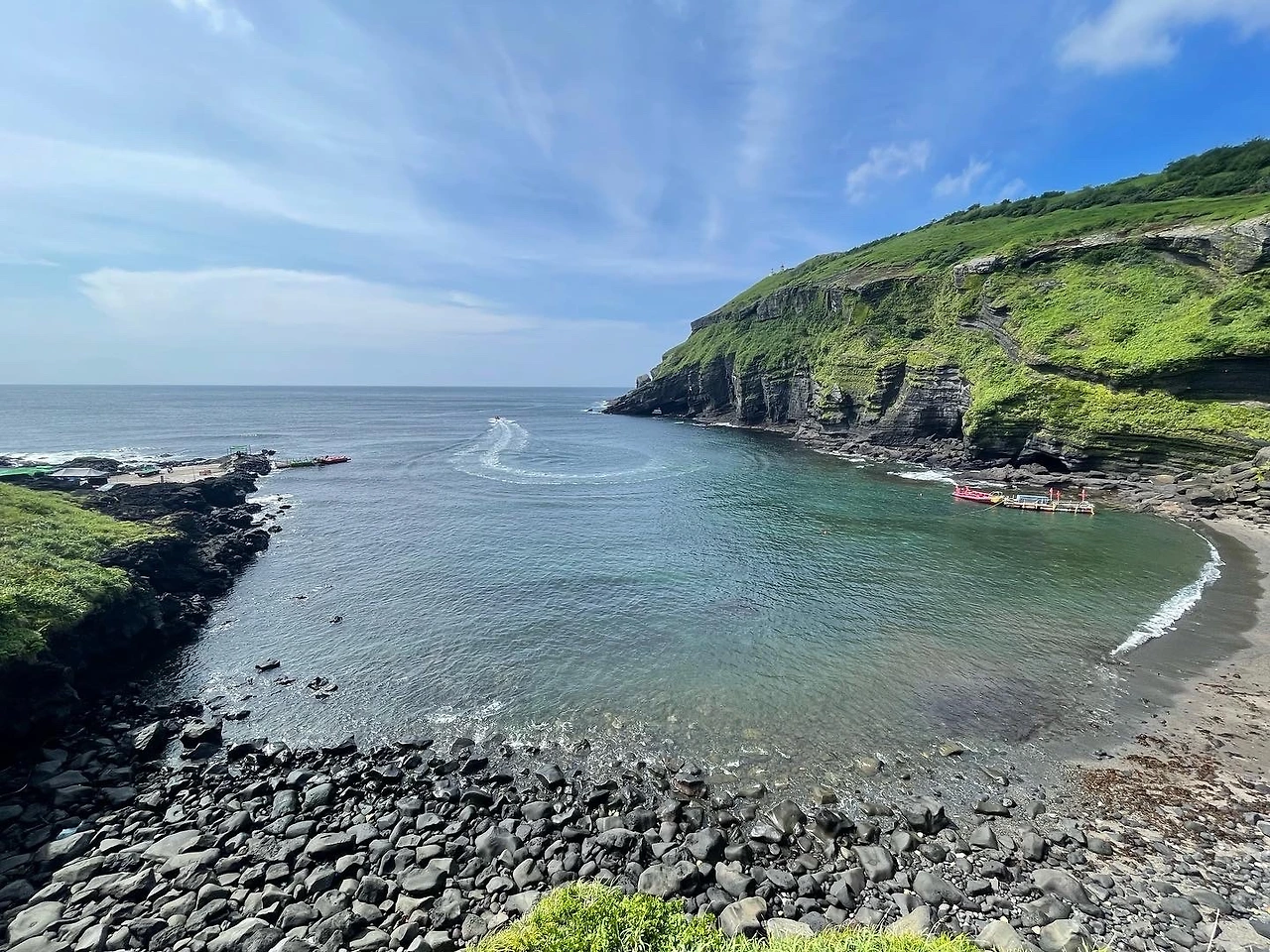 배를 타고 우도에 들어가면서 검색해 본 결과 자전거를 타고 돌아다니는 게 좋을 것 같아서 전기자전거를 예약했다. 전기자전거를 타고 우도 한 바퀴는 너무 힐링되는 시간이었다. 이곳저곳 돌아다니며 유명한 수제버거집인 '하하호호'에서 밥도 먹고 엄마랑 영상통화 하며 풍경도 보여주고 그렇게 시간을 보냈다. 땅콩아이스크림도 먹어봤다. 혼자 카페에서 여유를 즐기니까 여유롭긴 한데 심심함이 컸다. 나는 아직 혼여행보다 친구들과의 여행이 더 좋은 것 같다. 혼자 카페에 있으니까 뭘 해야 될지 모르겠어서 폰으로 유튜브만 보다 나왔다.
