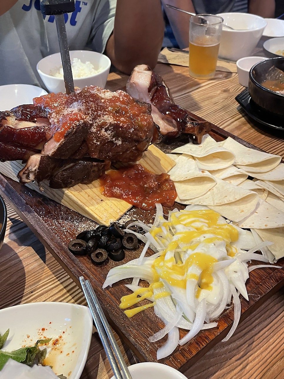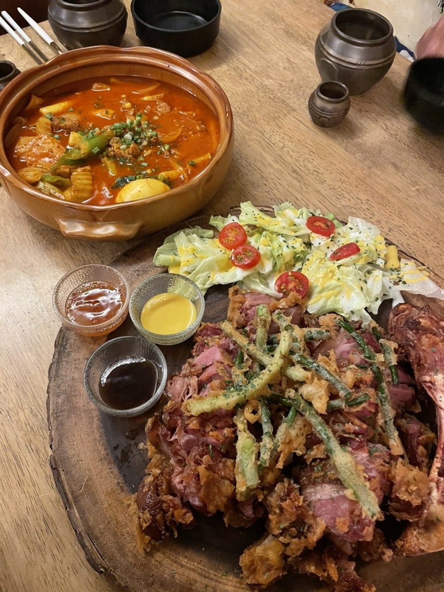여기서 저 훈제튀김족발 꼭 먹어야 된다!! 흑돼지 떡볶이도 같이 먹는 거 추천이다.