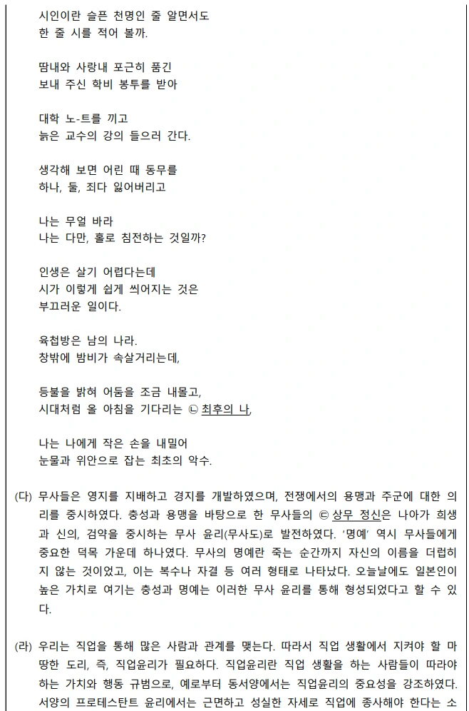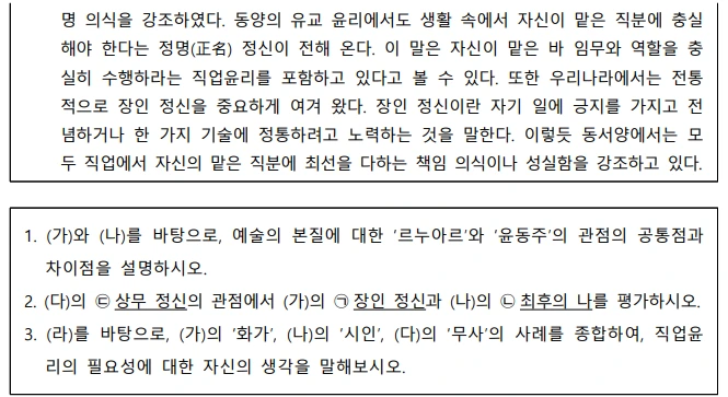 아래는 2025학년도 계열적합전형의 인문계 기출문제입니다.