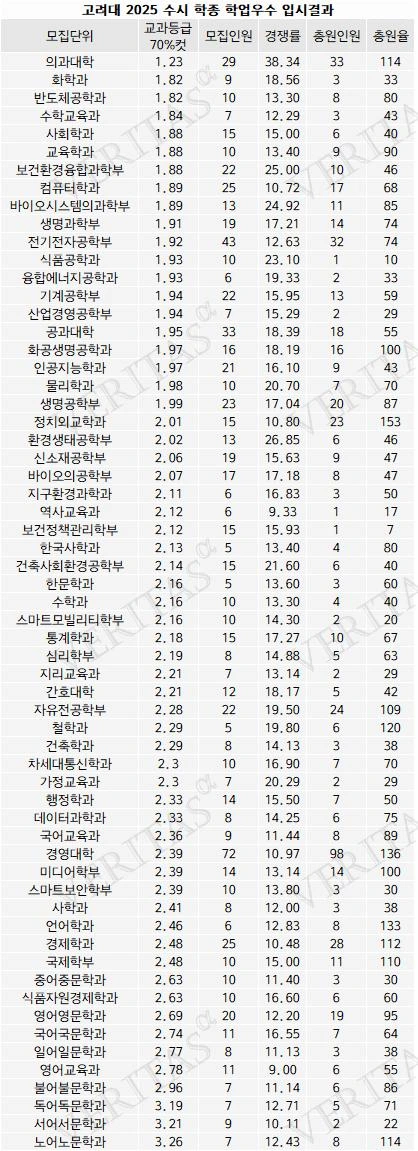 고려대 학업우수전형의 고교유형별 합격 비율을 보면