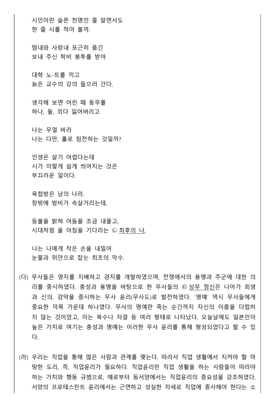 아래는 2025학년도 고려대학교 계열적합전형 인문 계열 문제입니다