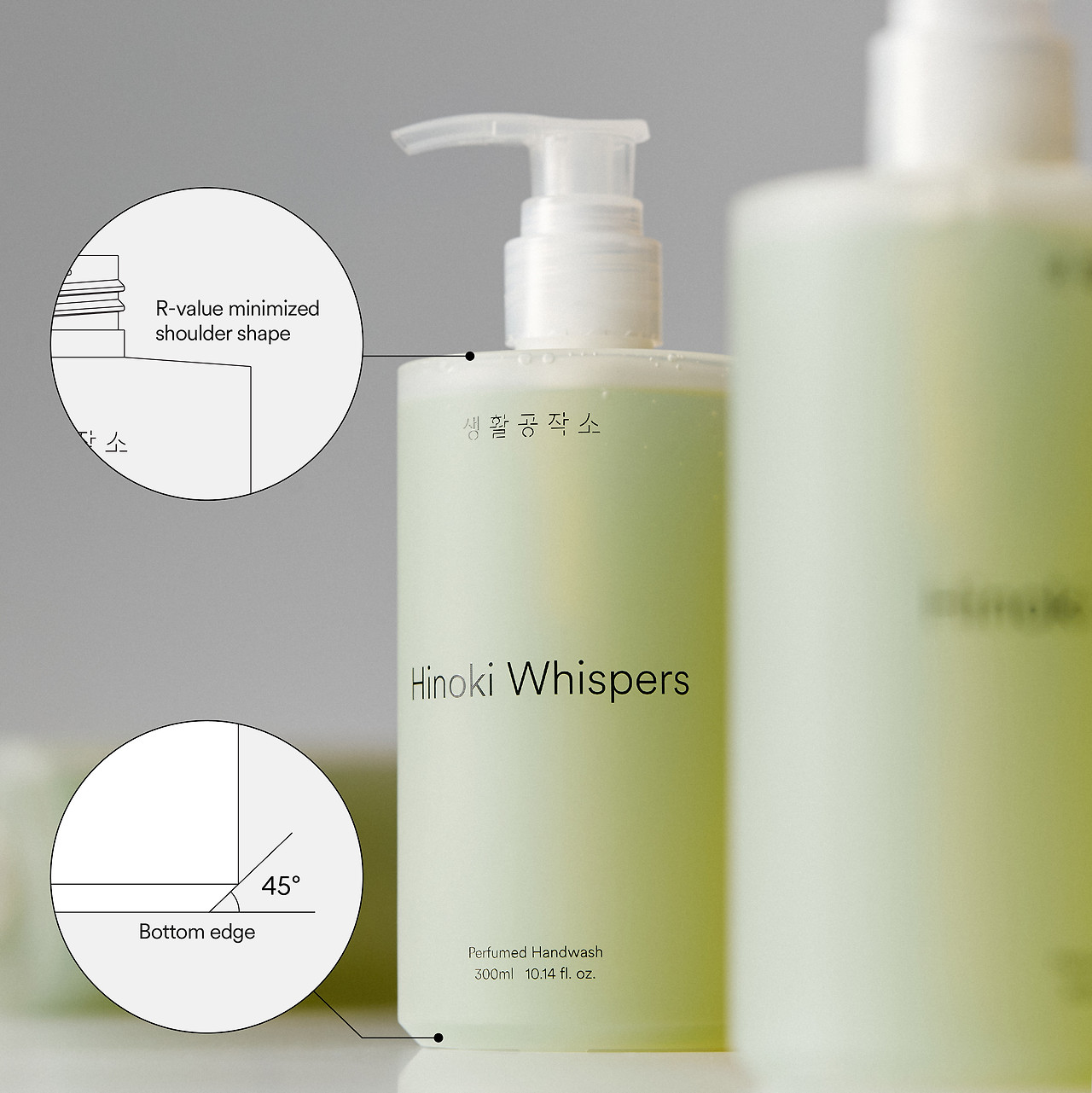 퍼퓸 핸드워시는 단순한 생필품이 아니라 일상에 향을 더하는 라인이기 때문에 소비자가 제품을 받았을 때부터 사용하기까지 다양한 감각에 노출되기를 기대하며 디테일을 더했습니다.
