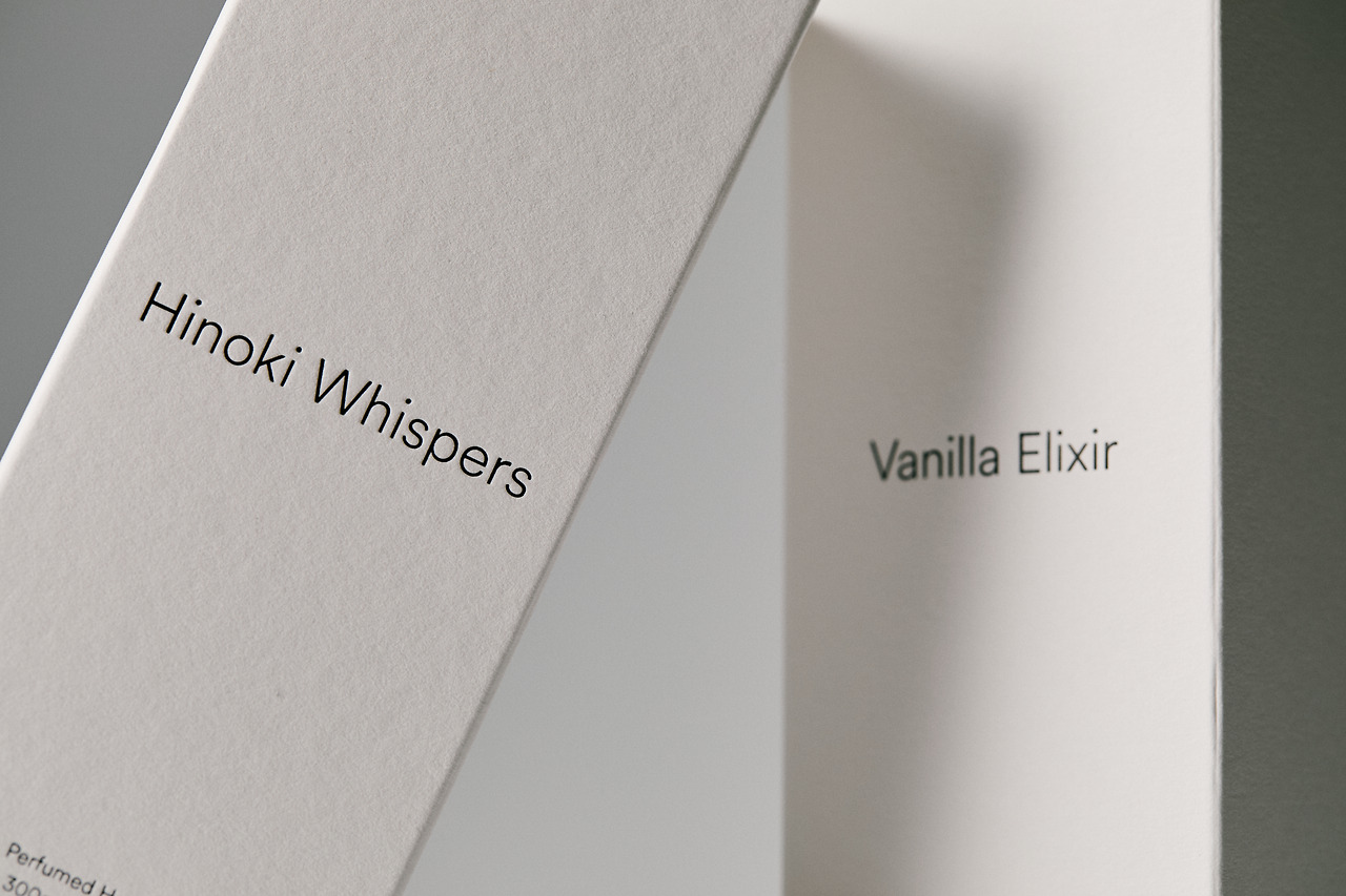 방향이 결정된 뒤엔 디테일을 손보며 완성도를 높였는데요. 최종 결정된 디자인은 최소한의 정보만을 기입하고 향 네이밍이 우선적으로 눈에 띄도록 배치했습니다. 가장 기본적인 가운데 정렬 레이아웃을 사용했기 때문에 디자인 차별성에 대한 리스크가 있었으나 생활공작소 한글 로고 타입 자체가 주는 인상과 힘을 믿었습니다.
