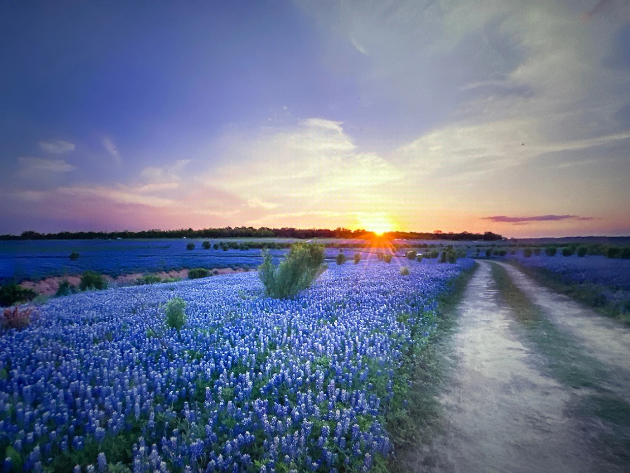 푸른 바다처럼 펼쳐진 블루보넷 밭 사이를 걷는데,