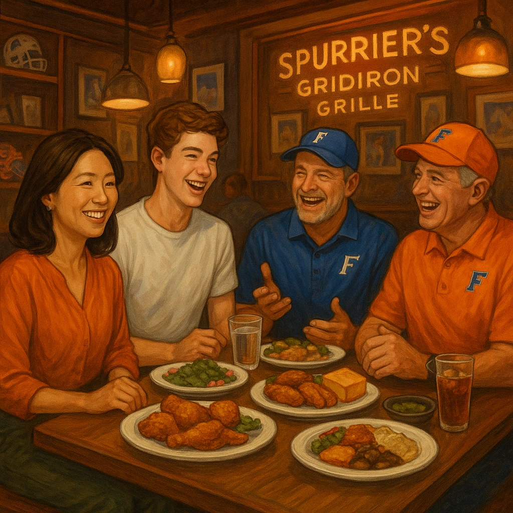 오후엔 UF 풋볼의 전설적인 인물, 스티브 스퍼리어 코치의 이름을 딴 Spurrier’s Gridiron Grille에서 야구팀 코치들과 식사를 함께했다.